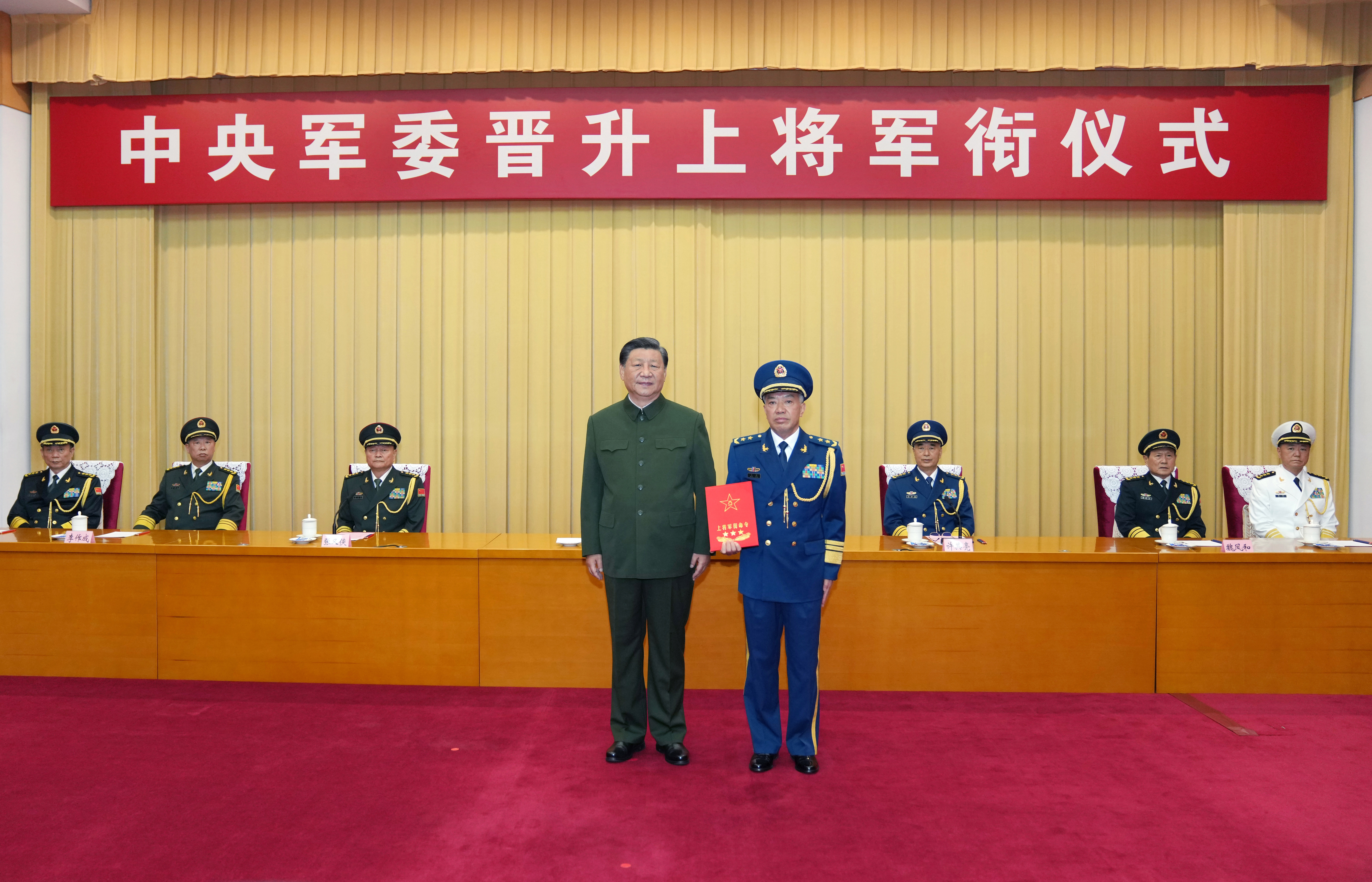 中央军委举行晋升上将军衔仪式 习近平颁发命令状并向晋衔的军官表示祝贺