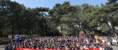 返程前,救援队在甘孜州界碑处拍了张合照。合照中,疾风不再像往常一样昂首挺胸,而是趴在地上。