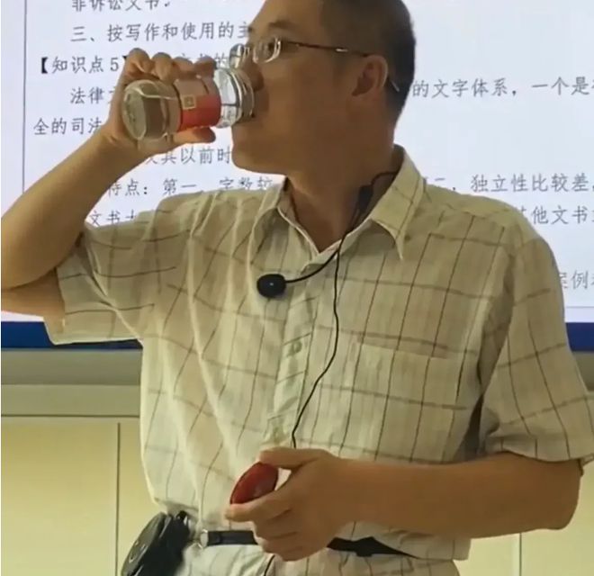▲湖南涉外经济学院学生拍到教师用辣酱瓶子喝水。截图来自社交平台。
