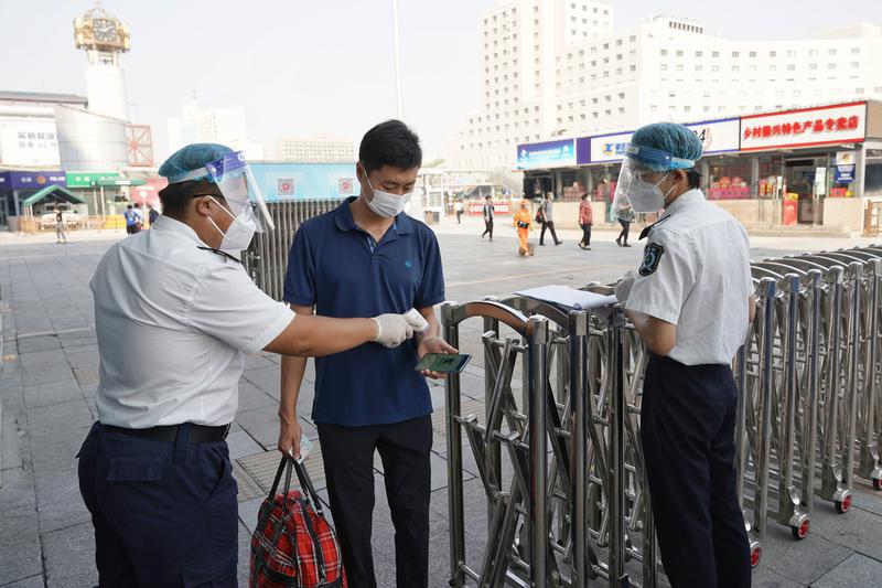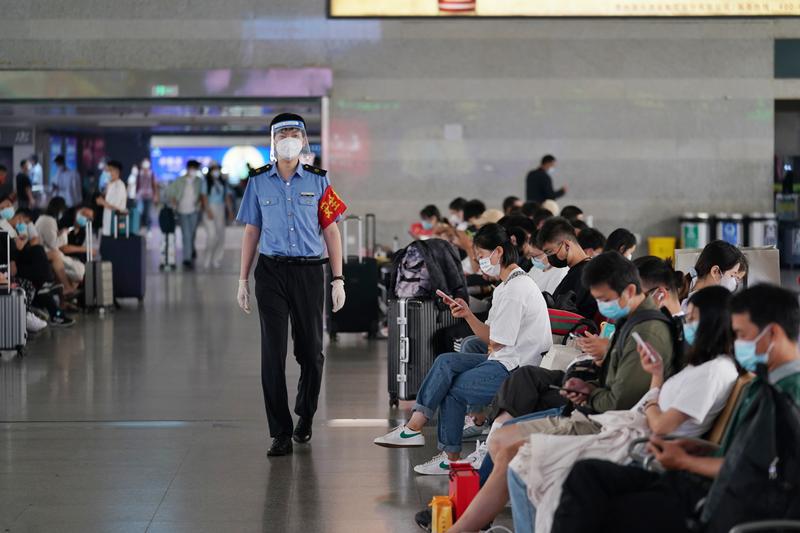 ▲9月10日,北京西站北广场,工作人员逐一查验旅客的健康码信息及核酸时效。新京报记者 王贵彬 摄