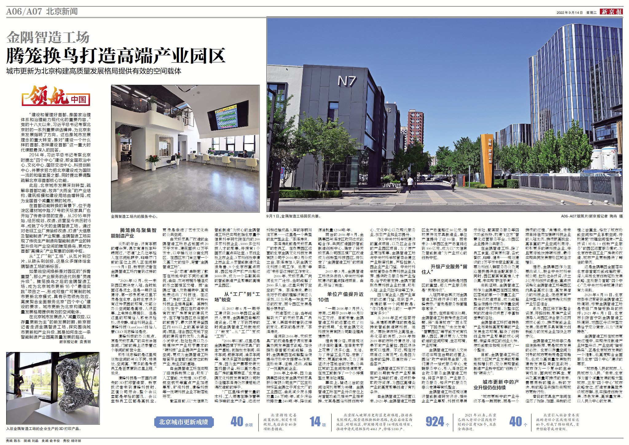 金隅智造工场在城市更新过程中,实现传统制造产业转型升级、产业空间“腾笼换鸟”,正是北京城市发展的一个缩影,也高度契合全面服务北京“四个中心”建设的要求。