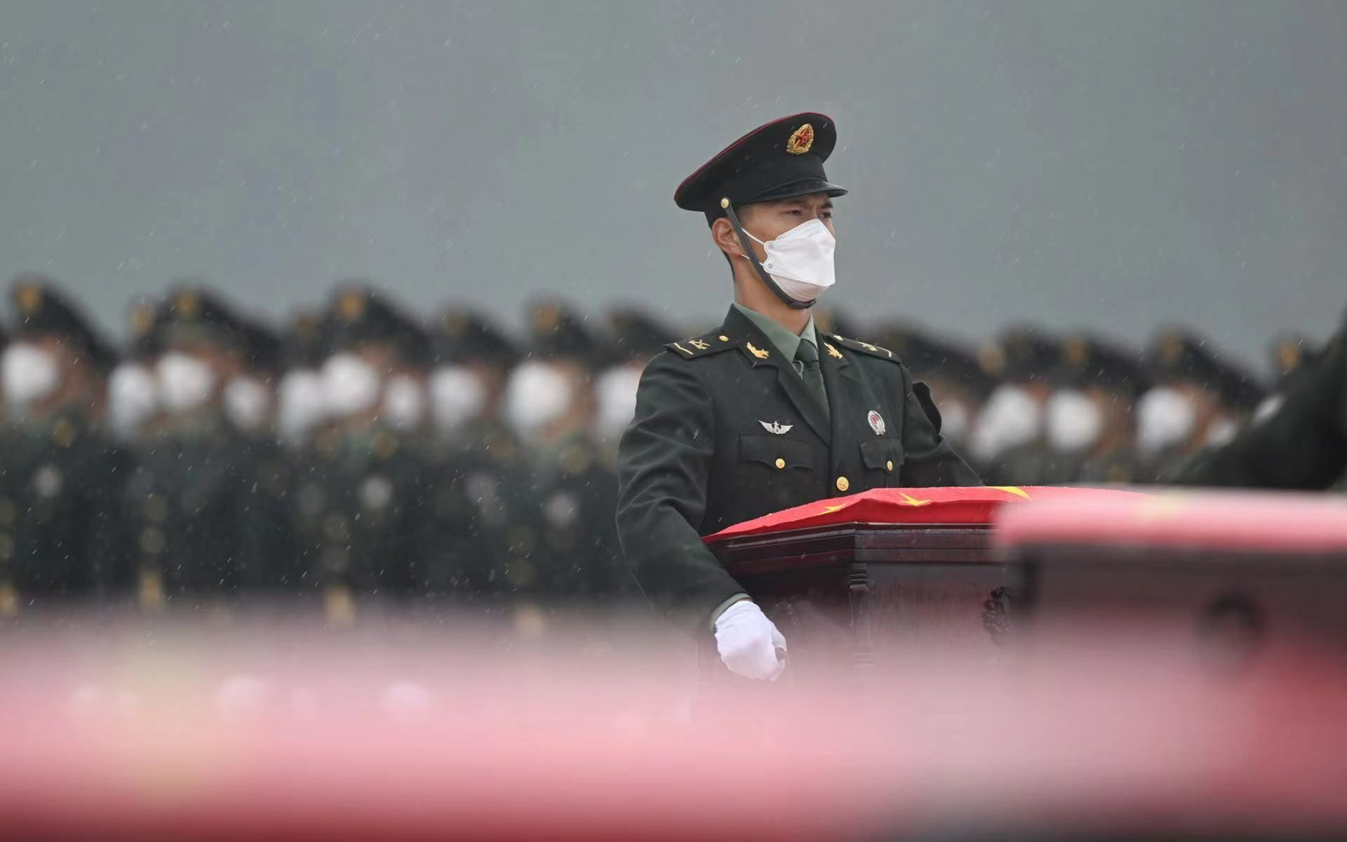 烈士棺椁覆盖国旗。新京报记者 陶冉 摄