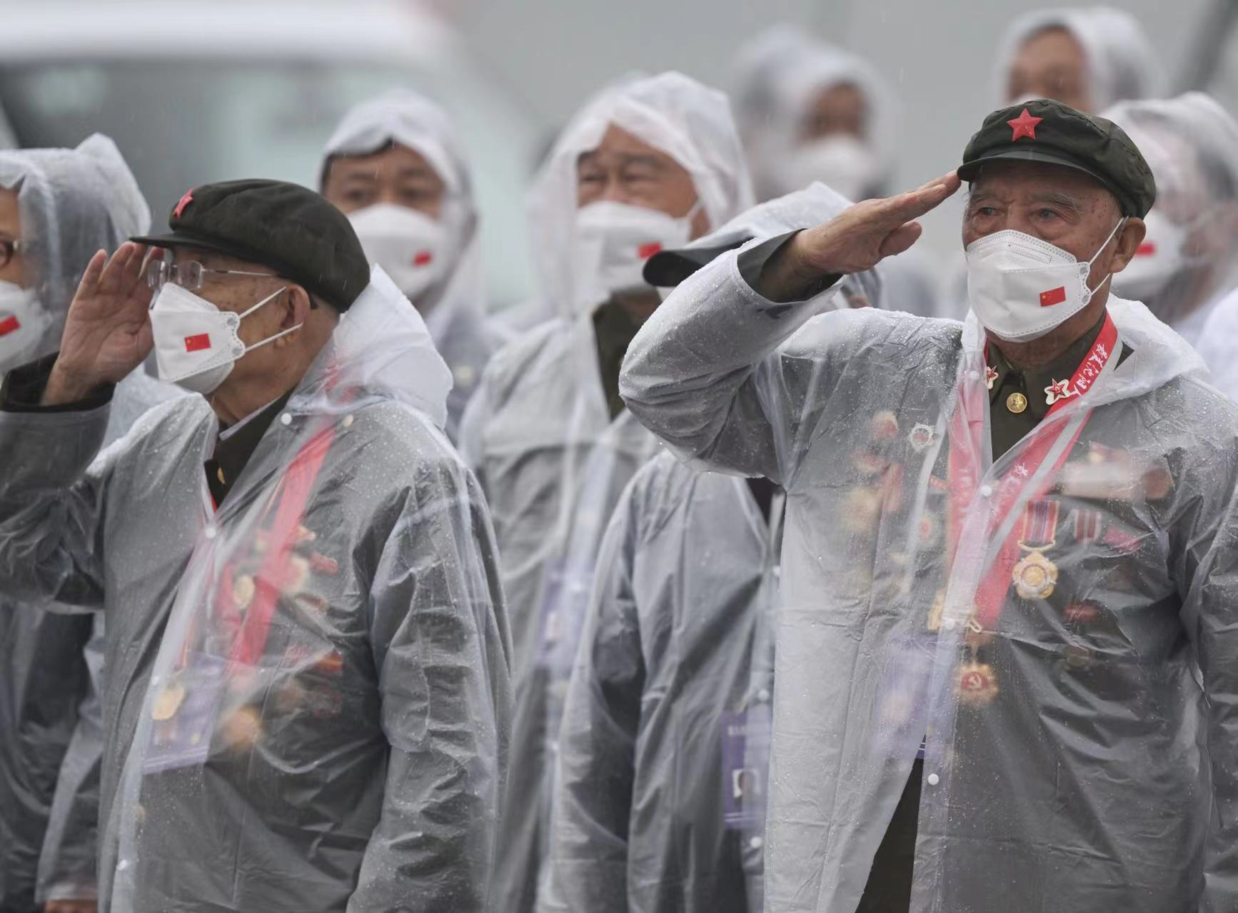 老兵向车队敬礼。新京报记者 陶冉 摄