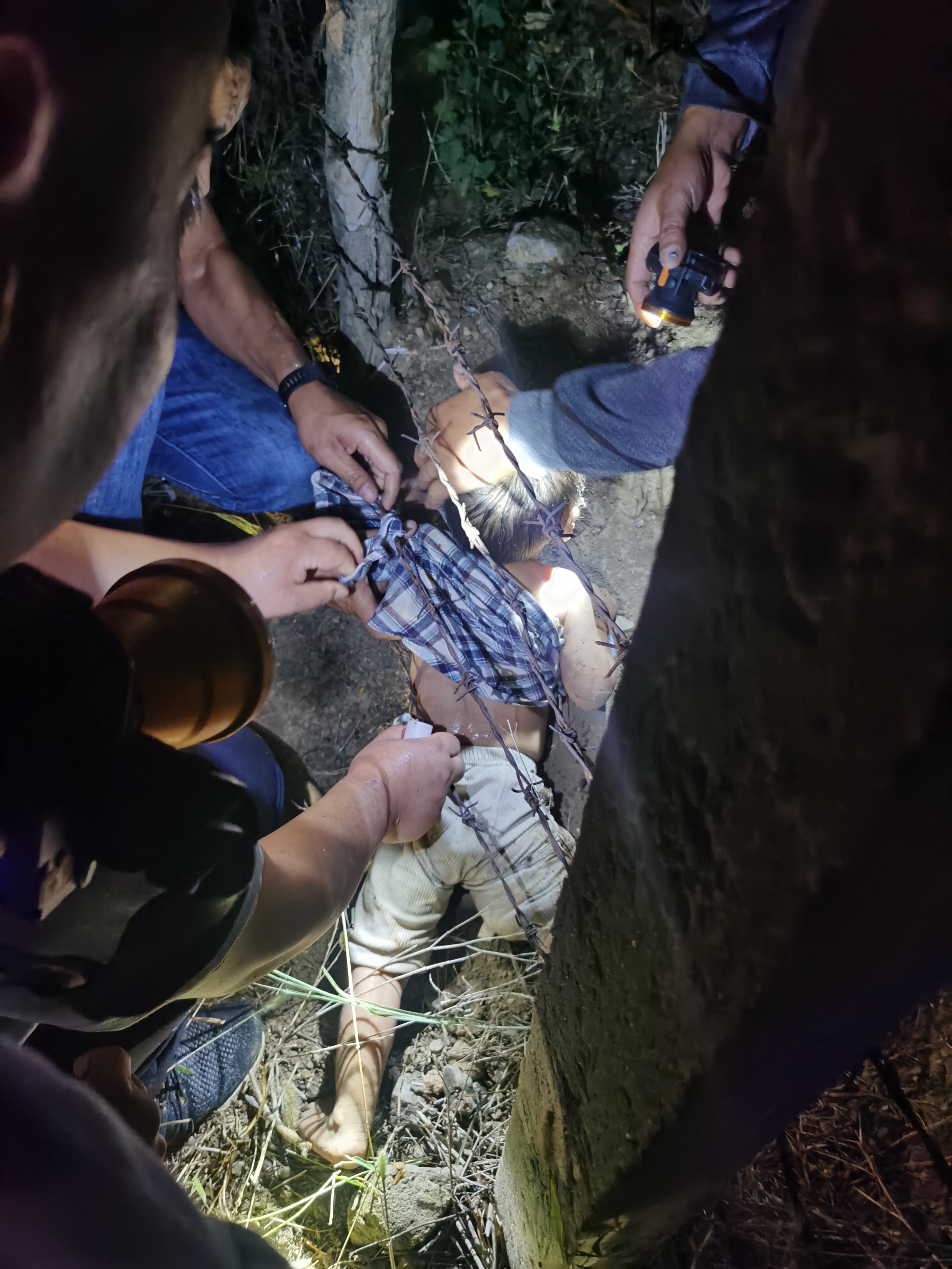 9月19日晚11时许,也就是诚诚失踪的第二天夜里,民警终于在距离事发地2公里左右的高速路护栏下找到了诚诚。“就在高速护栏下方的草沟旁,小孩的衣服被护栏铁丝网挂着,面朝下,身体在地上趴着,一身的灰,胳膊腿上都有明显的剌蹭痕迹,不哭不闹,只是动弹不得。”王士乐说。