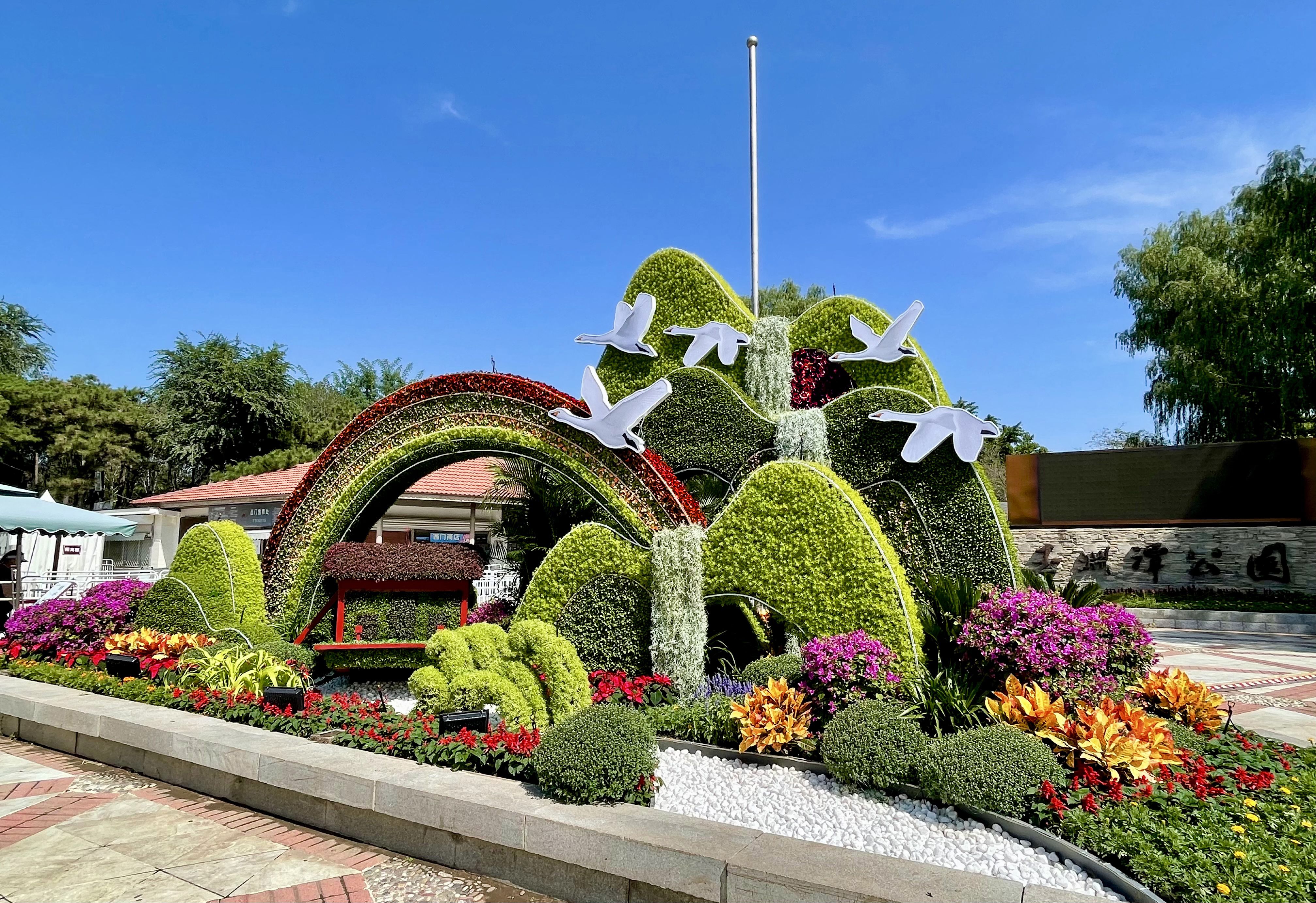 除此以外,景山公园“攻坚克难开拓奋进”花坛、紫竹院公园“谱写美好生活的乐章”花坛、玉渊潭公园“绿水青山”花坛、中国园林博物馆“瓷上园林”花坛也亮点纷呈,将祝福与愿景融汇其中。