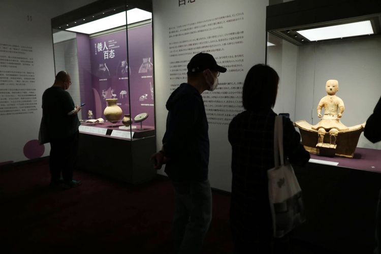 9月23日,清华大学艺术博物馆,嘉宾观看日本古坟时代末期(公元6世纪)的男性坐俑。