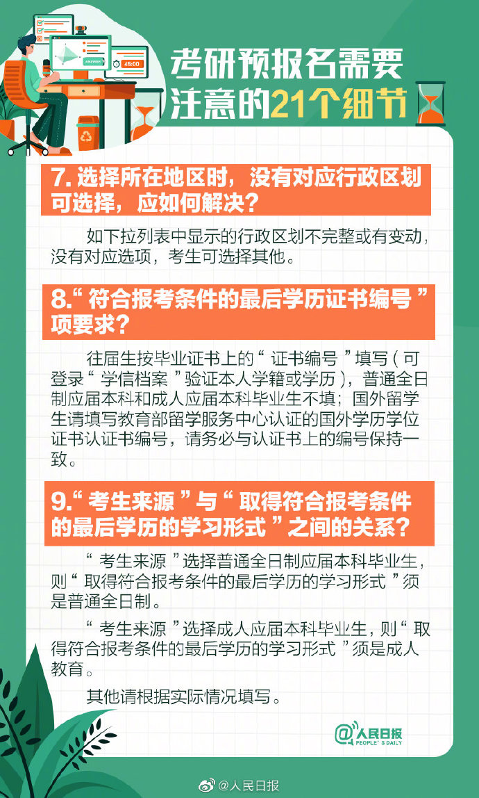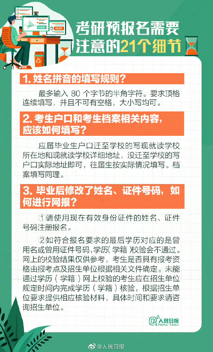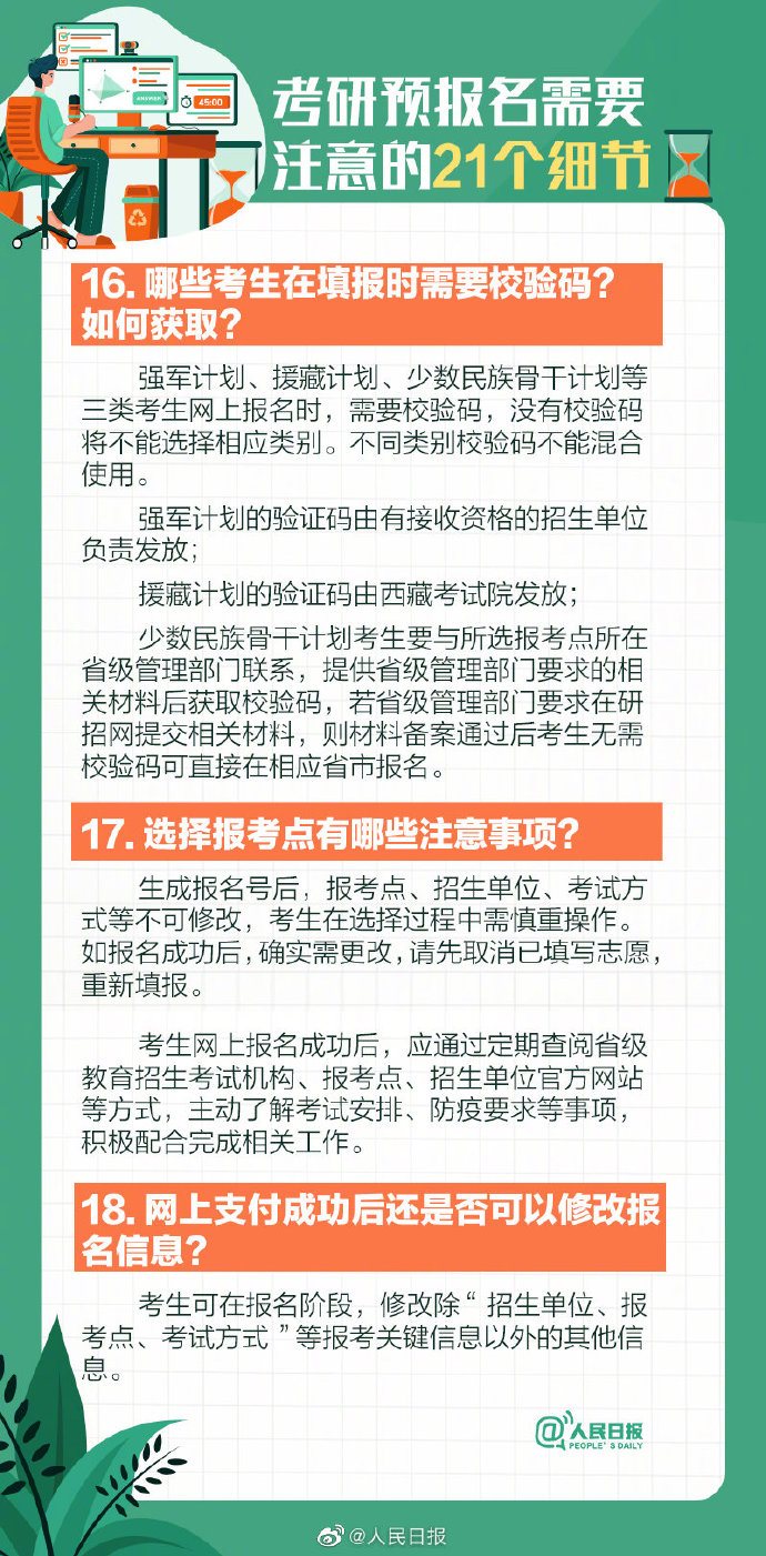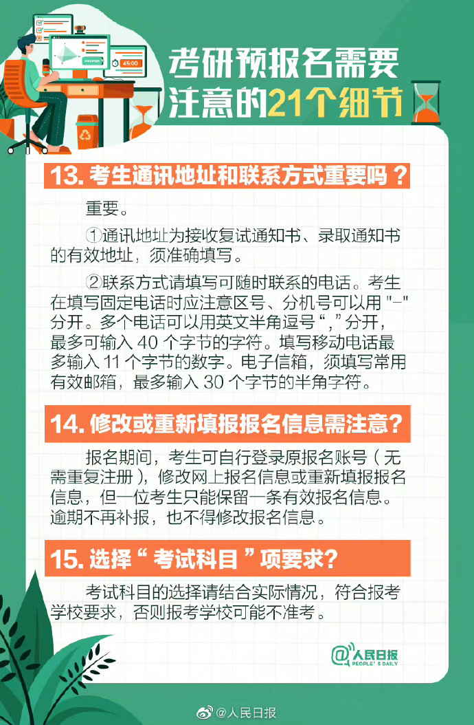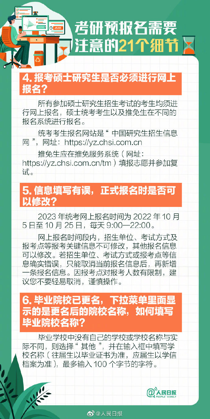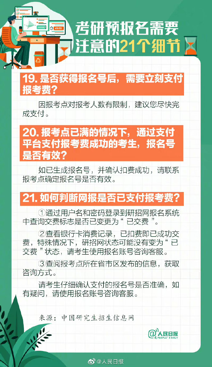 据@人民日报消息,2023考研今起预报名,注意以下信息:①9月24日至27日每天9点至22点,考研网上预报名;②所有参加硕士研究生招生考试的考生均须网上报名;③通讯地址和联系方式很重要,务必准确填写;④一位考生只能保留一条有效报名信息…考研预报名要注意的21个细节↓↓考研的小伙伴,愿你一“研”为定!