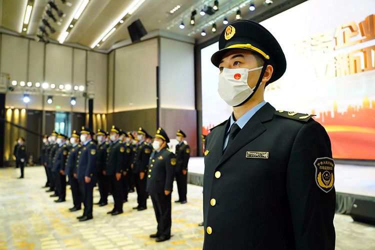 市场监管执法人员在宣誓大会上庄严敬礼。