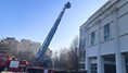 实战演练现场,灭火机器人和云梯消防车进行灭火作业。石景山消防供图