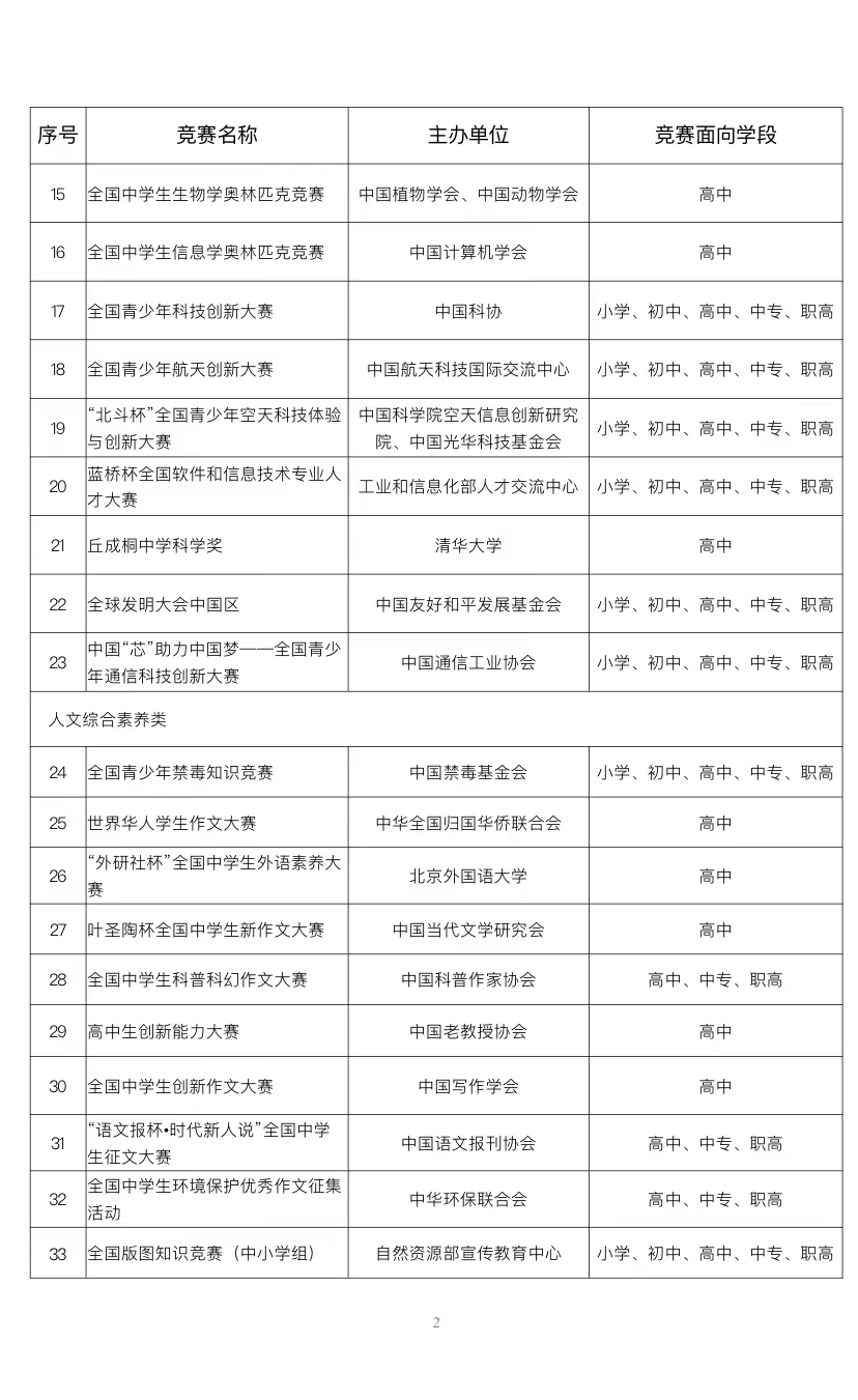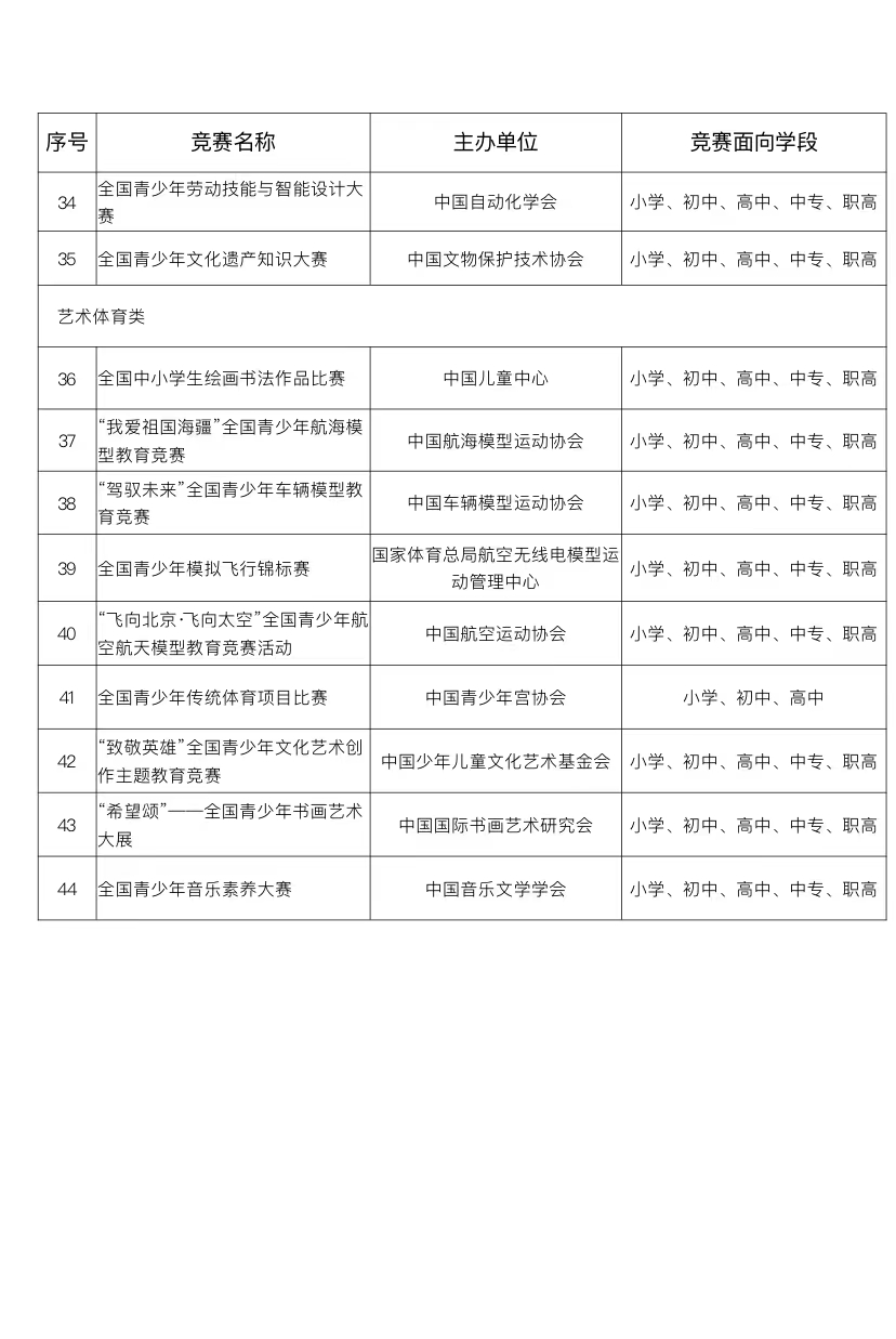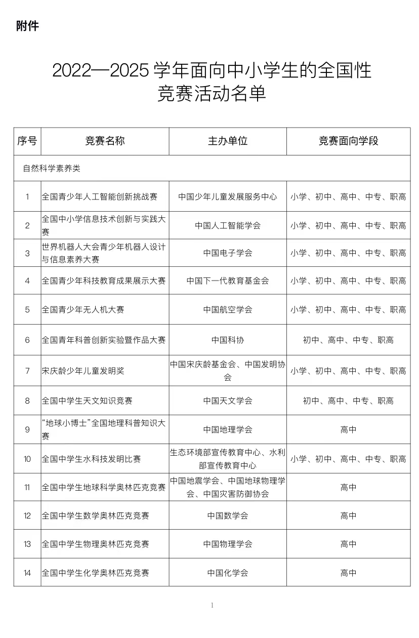 中小学生可以参加哪些全国性竞赛活动?教育部公布名单