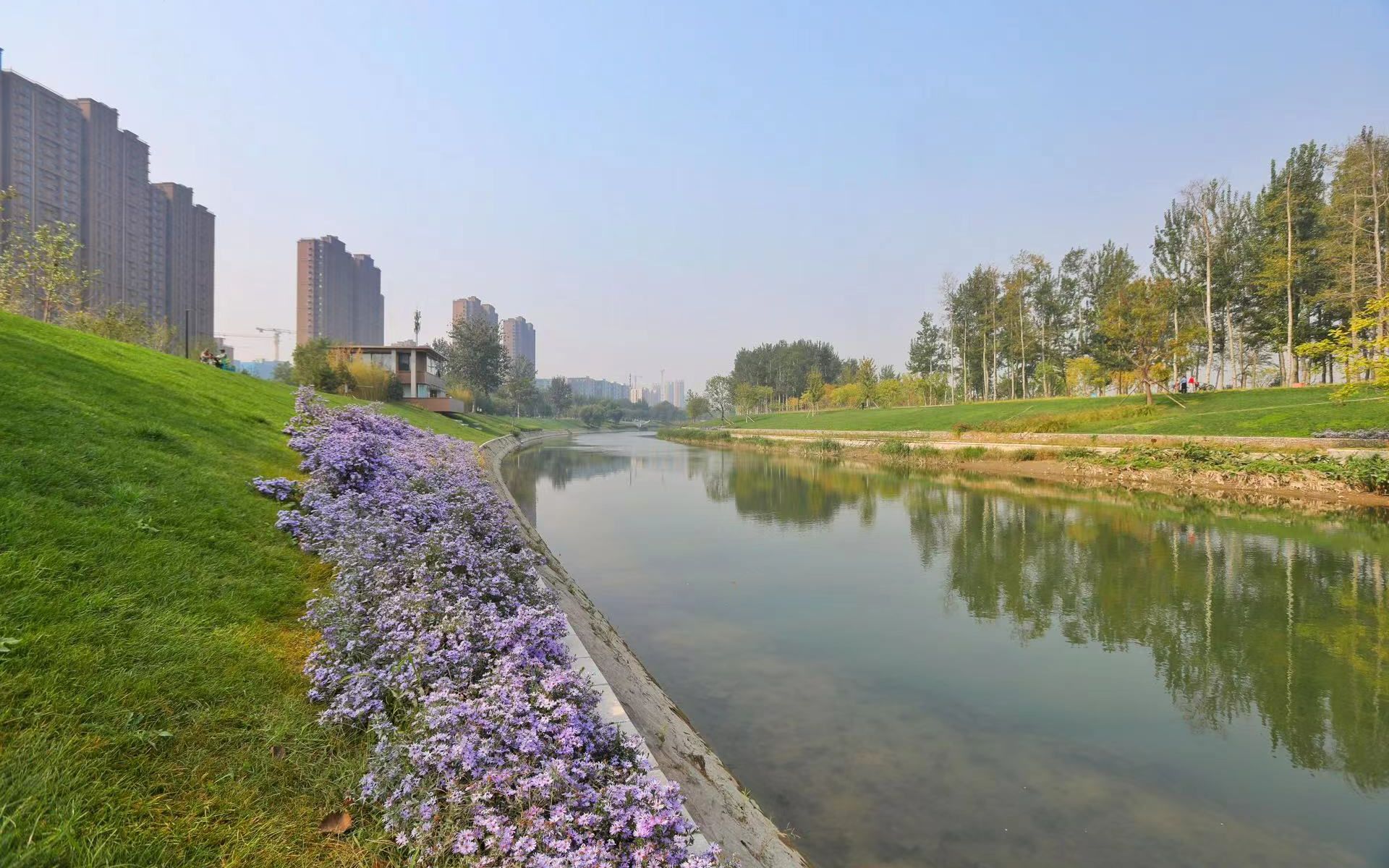 鲜花绿草与清澈的坝河相得益彰。新京报记者 王飞 摄
