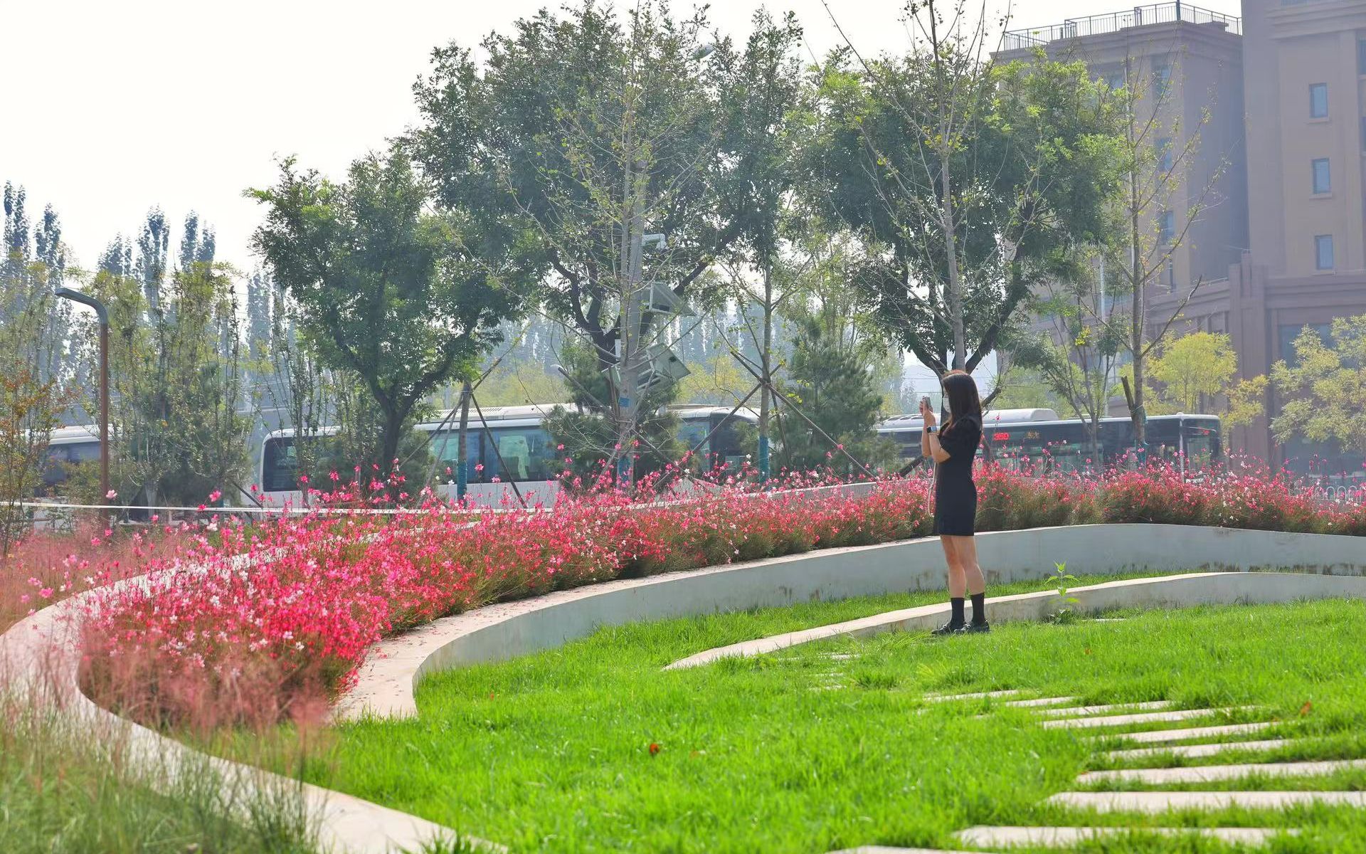 这个新开放的滨水空间色彩斑斓,除了绽放的鲜花、绿色的草坪,还有彩色的塑胶跑道,与清澈的坝河相得益彰。今天上午,滨水空间迎来了不少市民,有带小朋友来玩的,有晨练的,许多市民在美景前拍照留念。