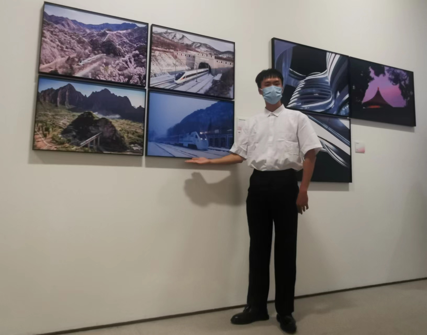 北京交通大学交通运输学院大四学生黎熙入选此次展览的是京张铁路摄影作品,他特意选取了京张铁路与万里长城同框的画面。