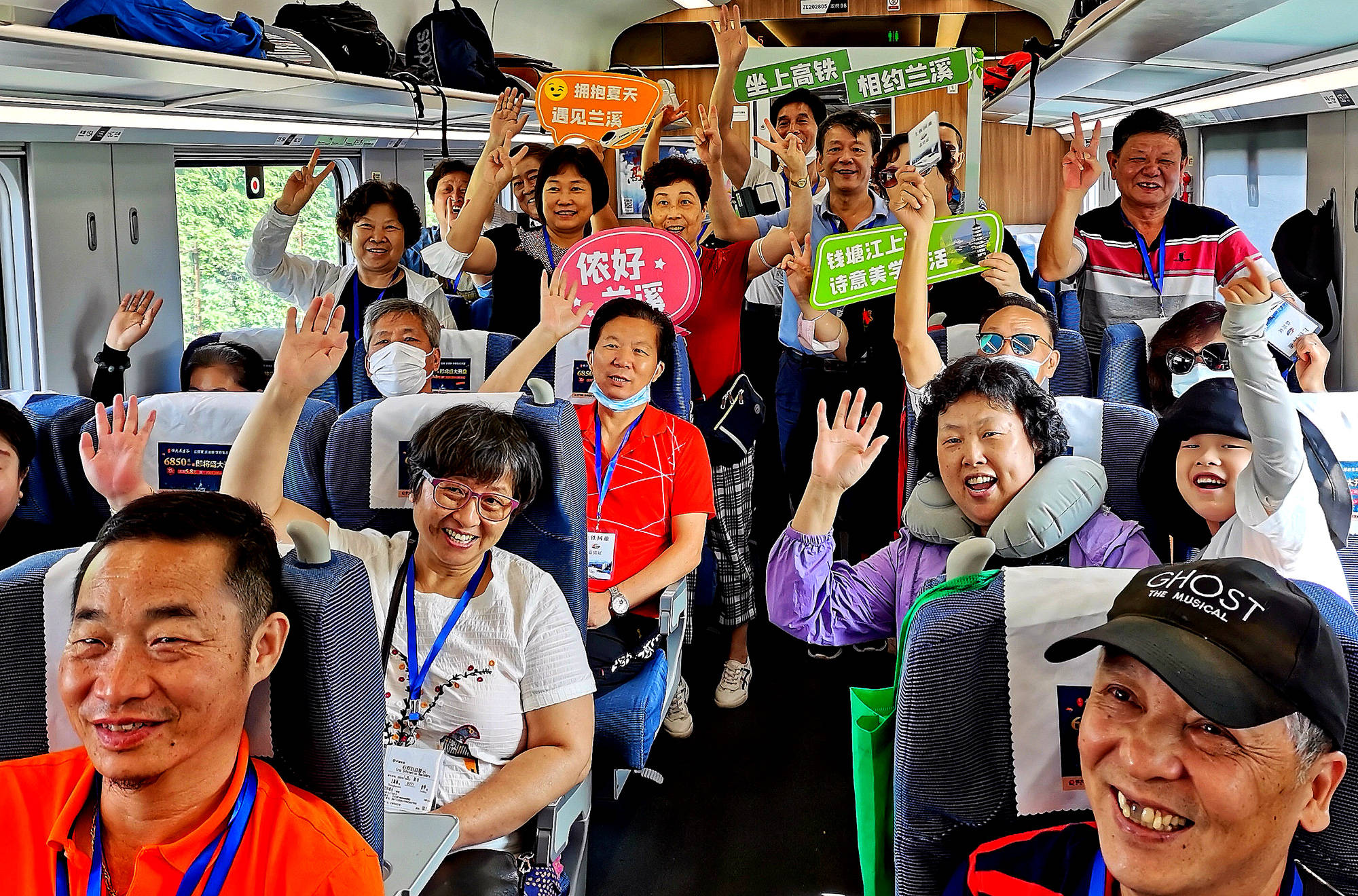 ▲资料图。旅客在车厢内拍照留念。图/新华社