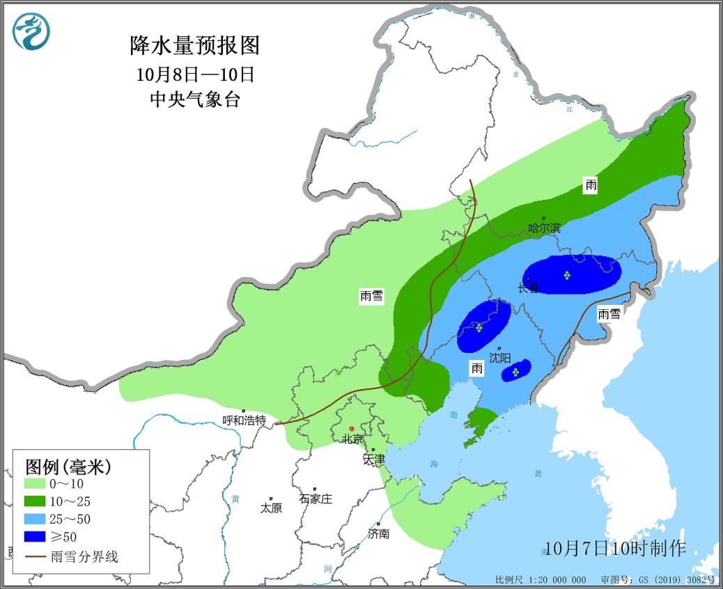 8日至10日,内蒙古中东部、吉林东部及山西北部、河北北部等地有小到中雪或雨夹雪,内蒙古东部山区局地有大到暴雪;内蒙古东部平原地区、辽宁、吉林、黑龙江南部等地的部分地区有中到大雨,局地暴雨;雨雪最强时段在9日。