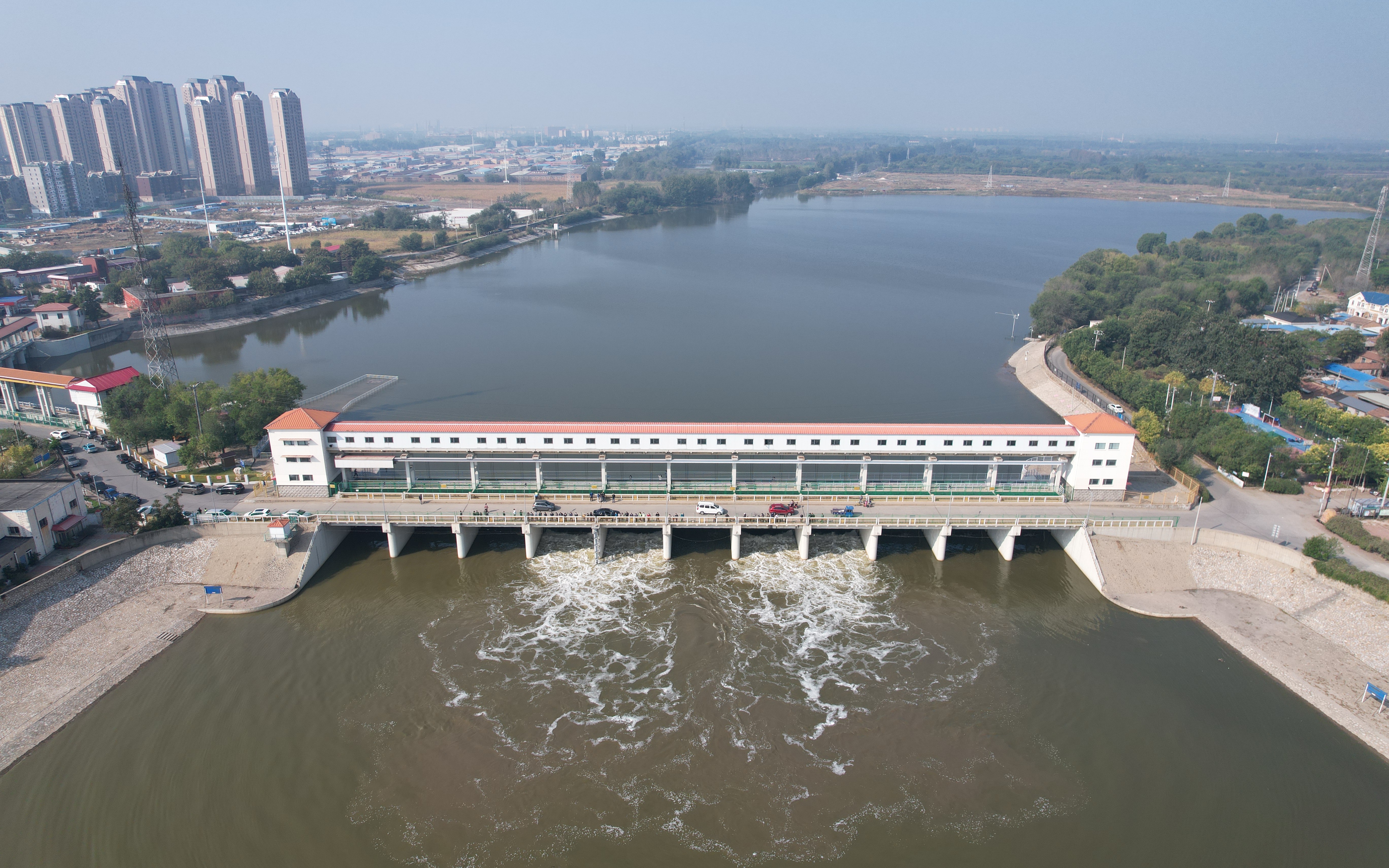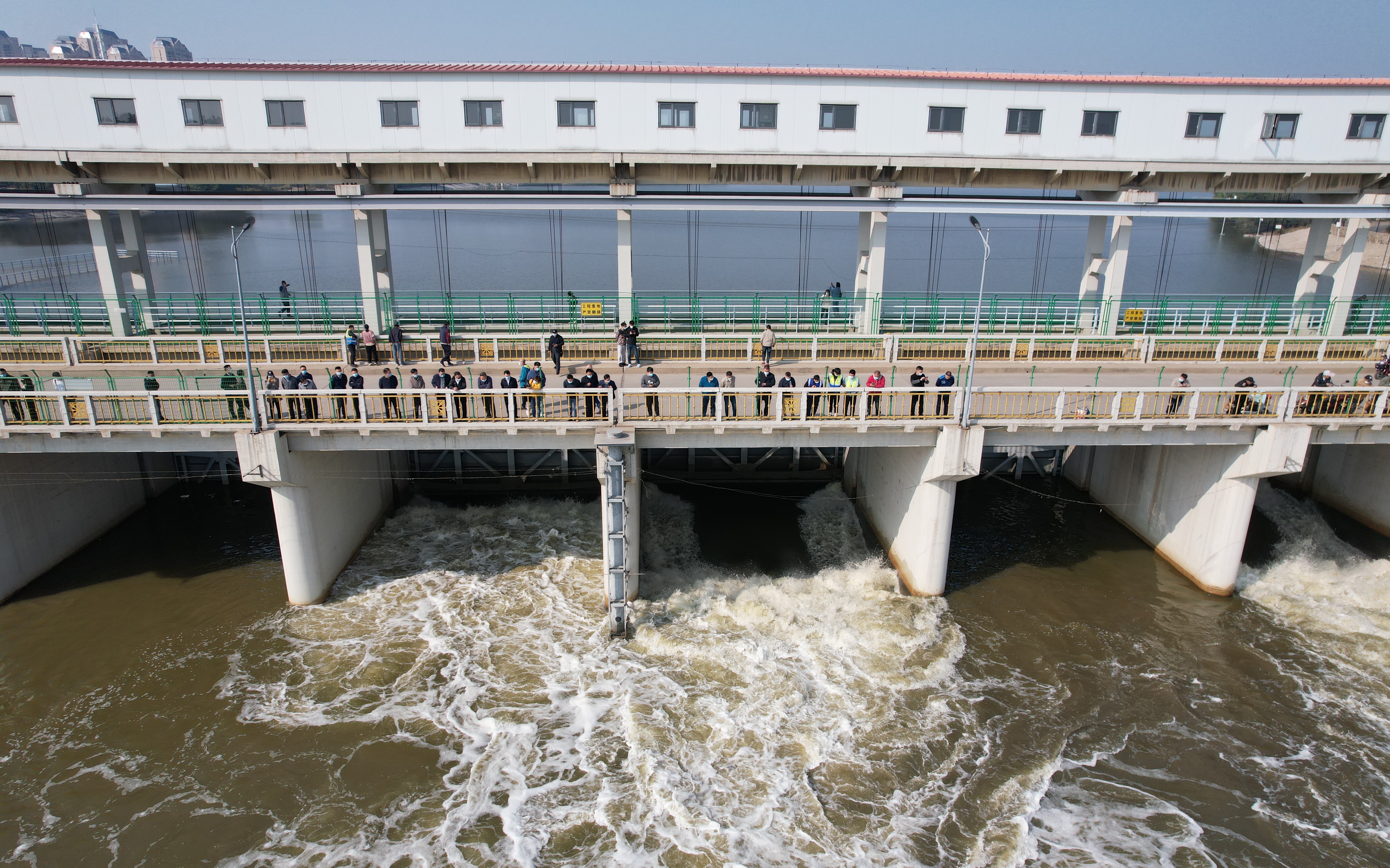 10月7日,天津屈家店水利枢纽提闸放水。摄/李冠伦