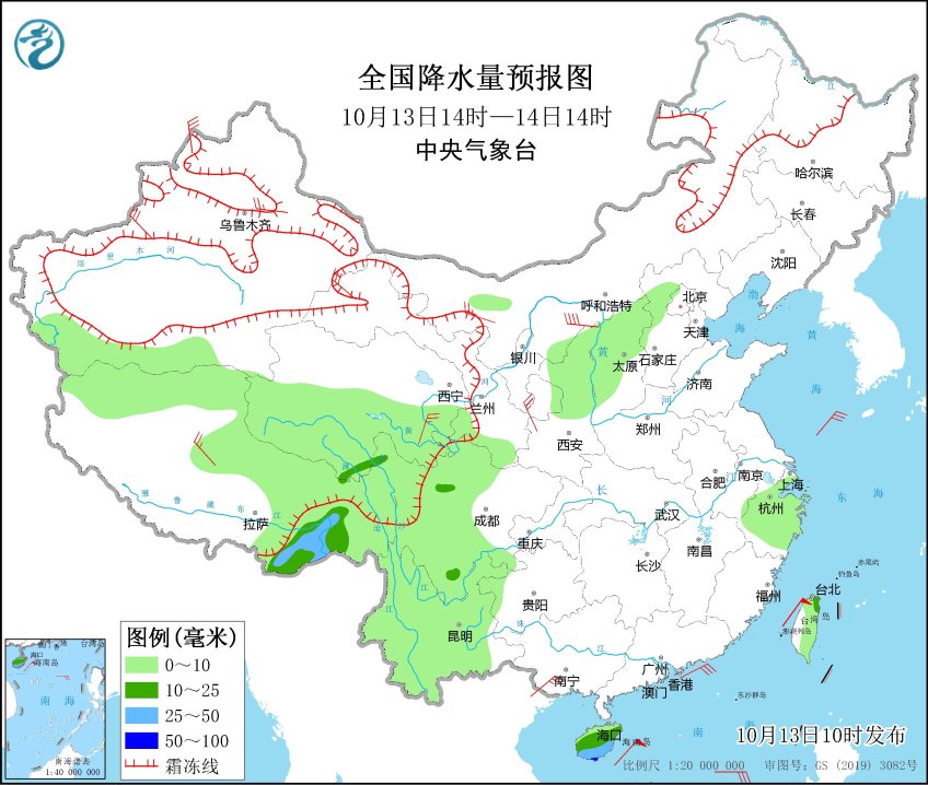 气象监测显示,昨日(10月12日)甘肃西部、青海中东部、西藏北部等地出现小到中雪或雨夹雪天气;云南西部、四川西北部等地出现中雨或大雨,云南德宏局地暴雨或大暴雨。