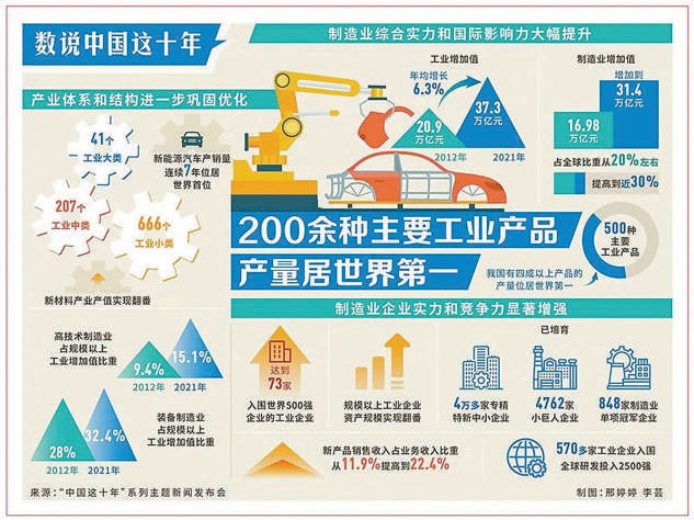 经过长期努力奋斗,我国成为世界第二大经济体、第一大工业国、第一大货物贸易国、第一大外汇储备国,国内生产总值达到114.4万亿元,人均国内生产总值超过1.2万美元,城镇化率超过60%,中等收入群体超过4亿人。如期全面建成小康社会、打赢脱贫攻坚战,使中华民族伟大复兴向前迈出新的一大步,实现了从大幅落后于时代到大踏步赶上时代的新跨越,也为开启全面建设社会主义现代化国家新征程积蓄了强大势能,为我国朝着第二个百年奋斗目标进军奠定了坚实基础。 制图:邢婷婷 李芸