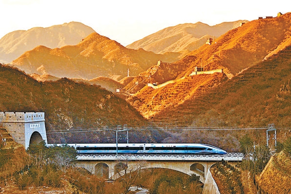 高铁是交通运输现代化的重要标志,也是一个国家工业化水平的重要体现。1909年,京张铁路建成;2019年,京张高铁通车。从自主设计修建零的突破到世界最先进水平,从时速35公里到350公里,京张线见证了中国铁路的发展,也见证了中国综合国力的飞跃。图为2022年1月10日,北京冬奥列车在京张高铁居庸关长城附近运行。 罗春晓摄