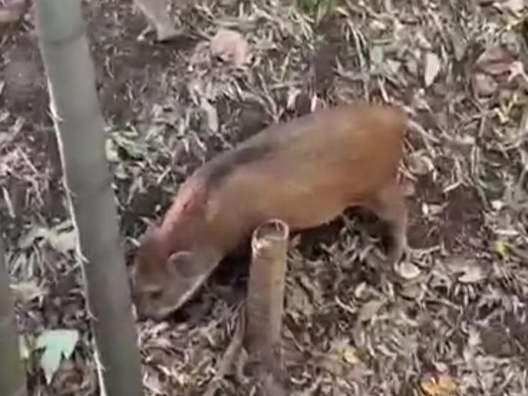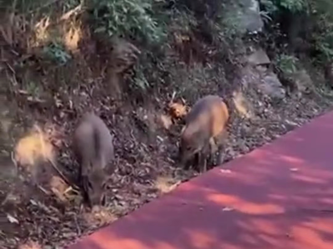 游客拍摄的视频显示,有多头野猪在景区内的竹林或是草丛间活动,它们大都体形较小,长着黑色的鬃毛,有的结伴出现,有的独自拱开地上的落叶觅食,无暇顾及正在拍摄视频的游客。