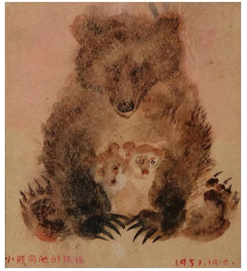 “展览中我最喜爱的是那幅《小熊同他的妈妈》,画幅很小,几笔水墨晕染,将熊母子之间的亲情表现出来,也在小纸上氤氲出温暖的感受。”中央美术学院人文学院学生孟岳宁说。