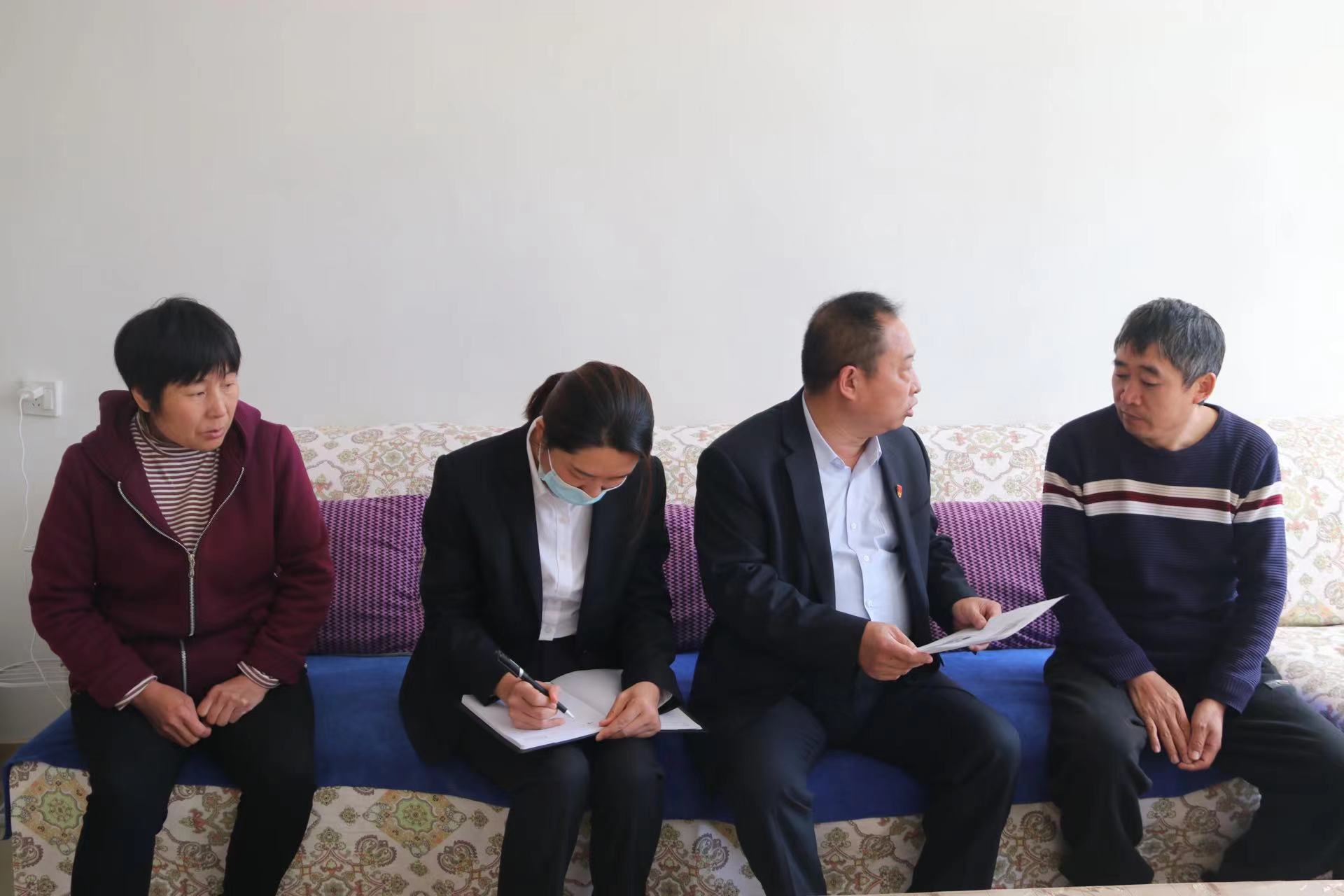 10月11日上午,当地政府工作人员来到李林雨家办理助学贷款减免业务。 受访者供图