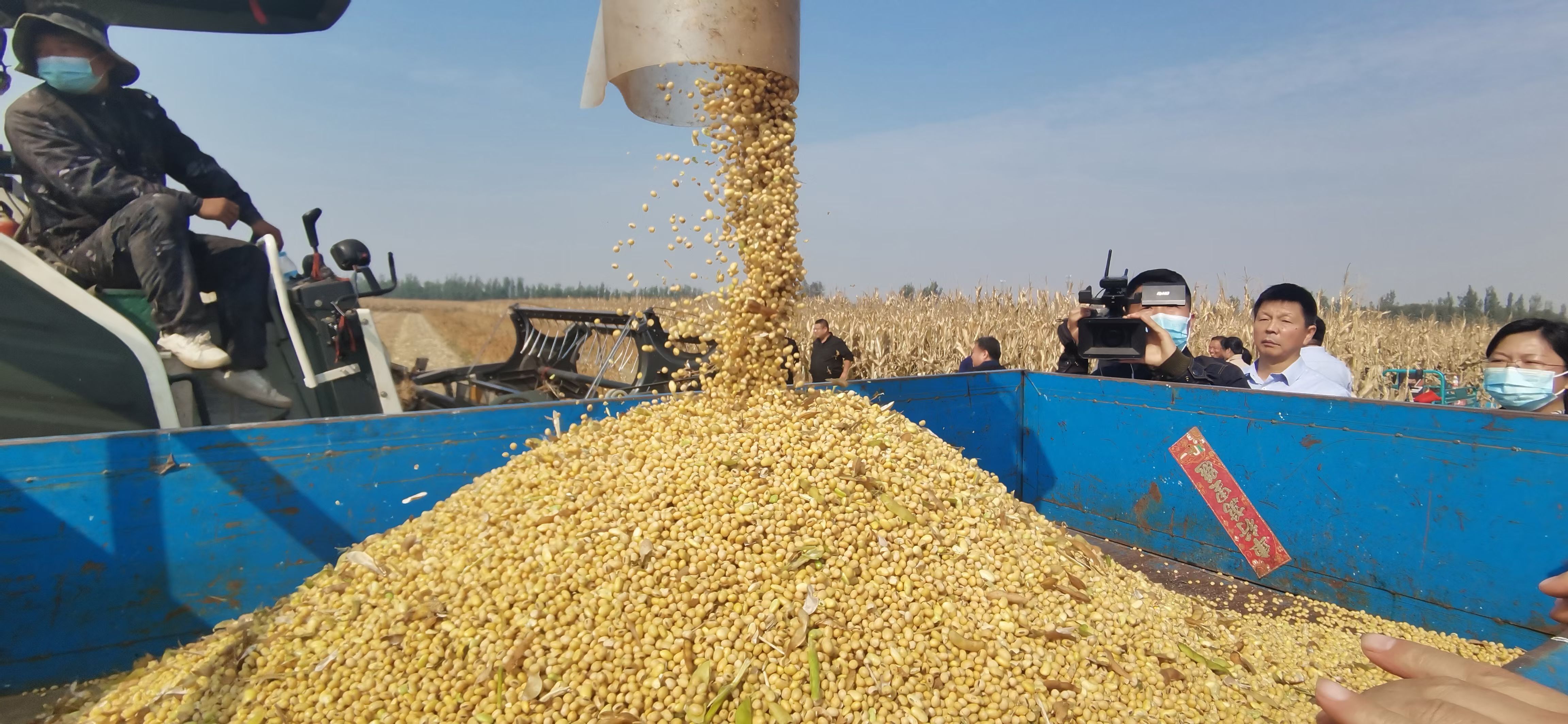 山东禹城大豆玉米带状复合种植示范点实收现场。受访者供图