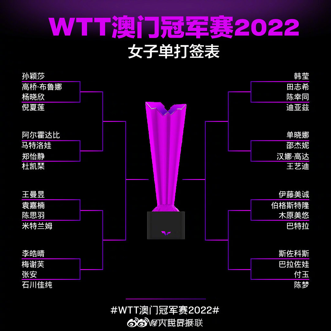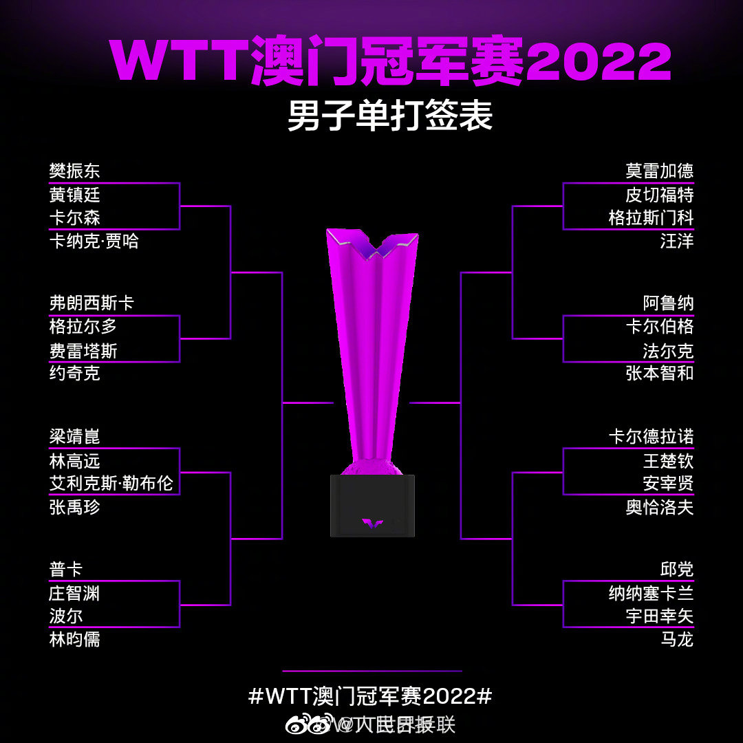 WTT澳门冠军赛签表出炉 男单首轮梁靖崑对阵林高远