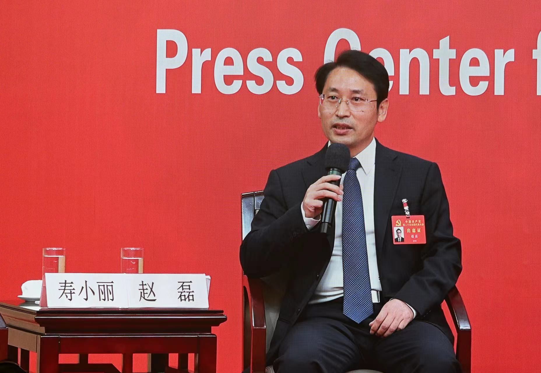 10月18日,中国共产党第二十次全国代表大会新闻中心,北京市委常委、秘书长赵磊在回答记者提问。 新京报记者 陶冉 摄