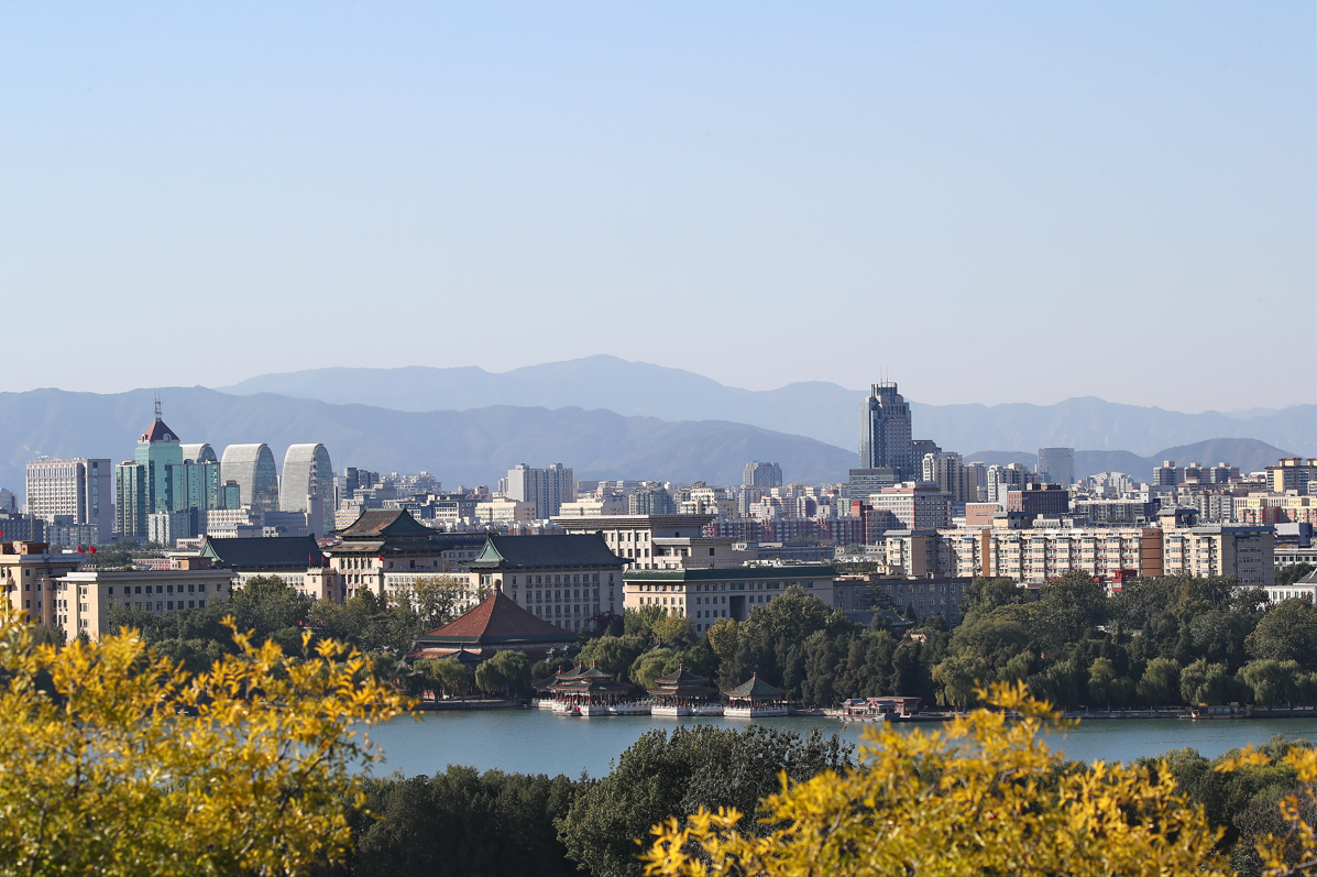 10月18日,北京天气晴好,“北京蓝”持续在线,站在景山公园万春亭眺望,远处西山和近处地标建筑尽收眼底。图/IC photo