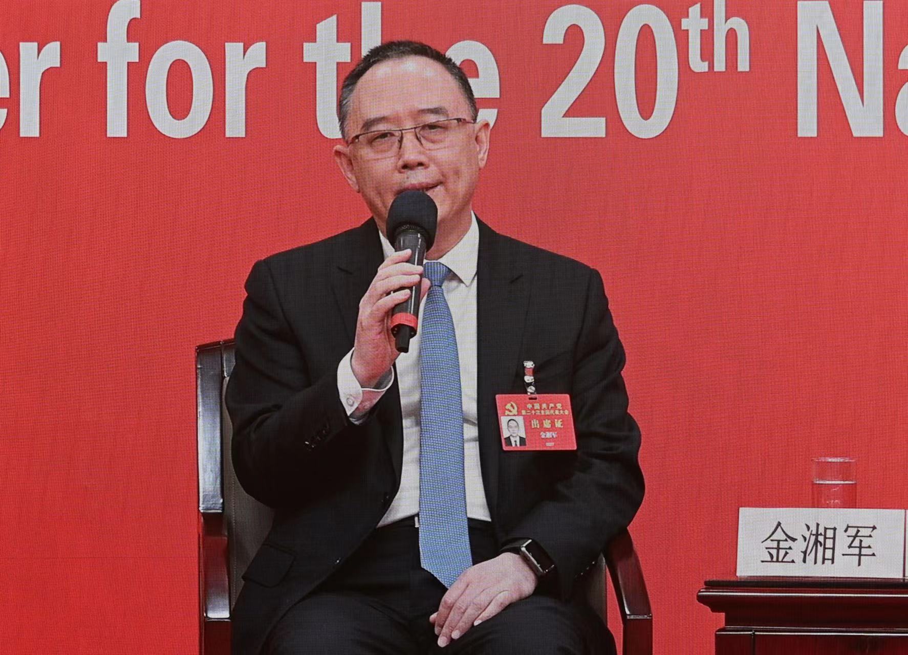 10月18日,中国共产党第二十次全国代表大会新闻中心,天津市委副书记金湘军介绍京津冀协同发展有关情况。 新京报记者 陶冉 摄