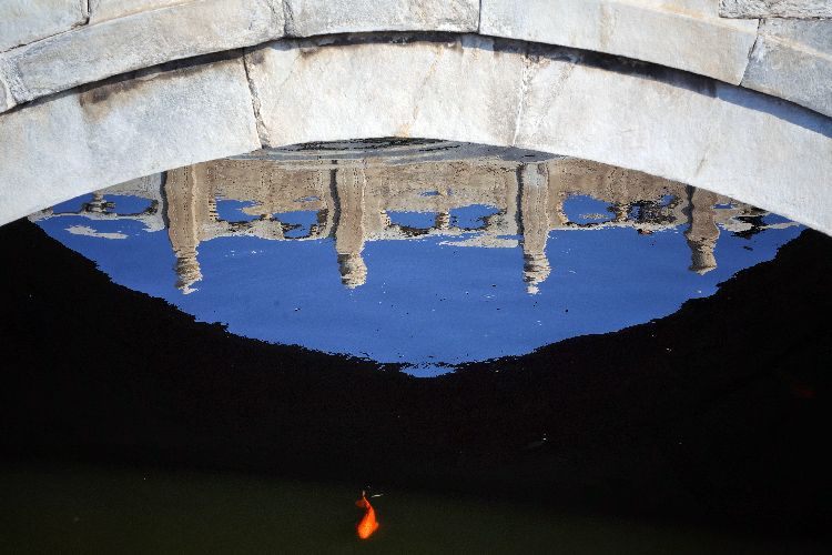 10月19日,故宫,蓝天倒映在水里,鱼儿游弋其中。