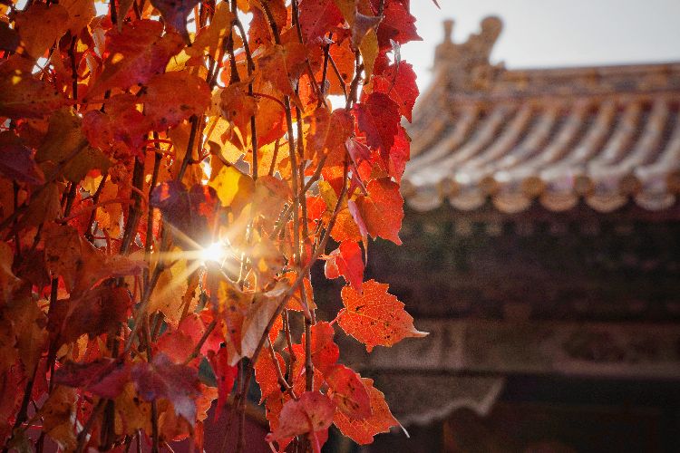 10月19日,故宫,夕阳透过红叶,让人心醉。