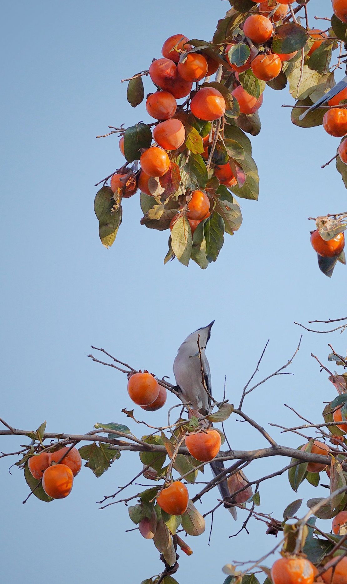 10月19日,故宫内的柿子树硕果累累,一只鸟儿站在枝头望着满树果实。