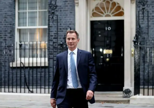 ▲10月14日,杰里米·亨特走出位于英国伦敦唐宁街10号的首相府。图/新华社