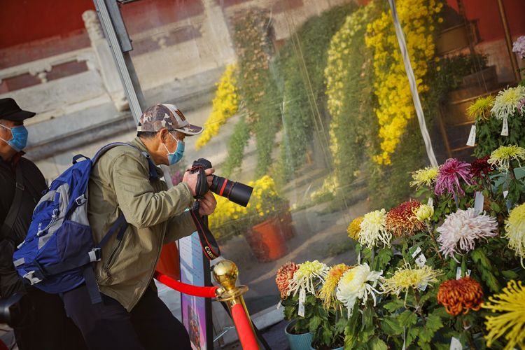 10月21日,天坛公园,游客拍摄菊花。