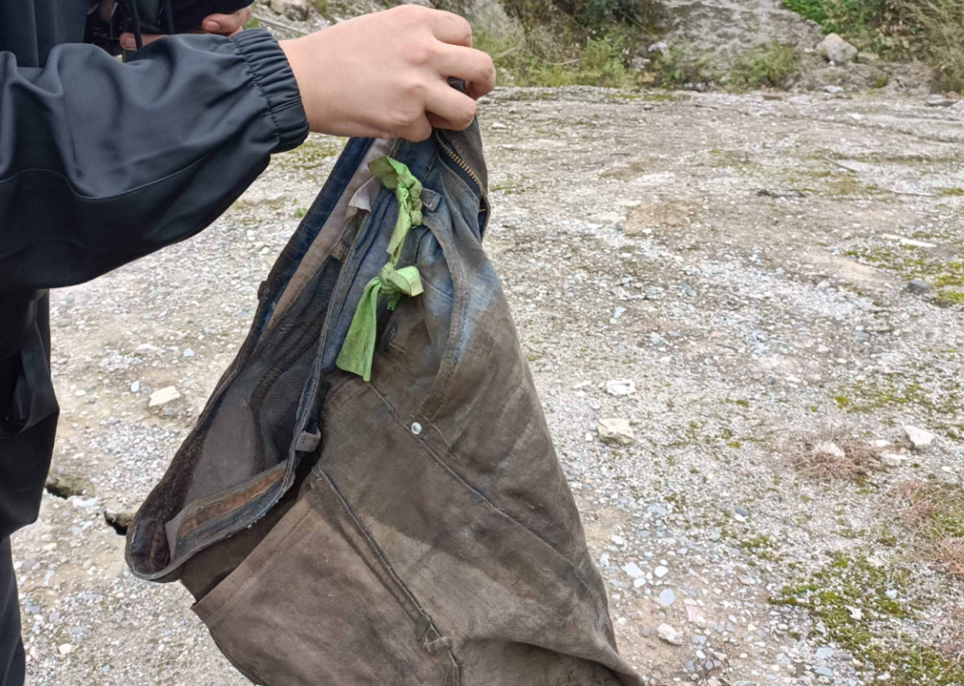 9月30日,甘宇获救后遗留在猛虎岗的裤子,已经脏到看不出颜色。 新京报记者 吴采倩 摄