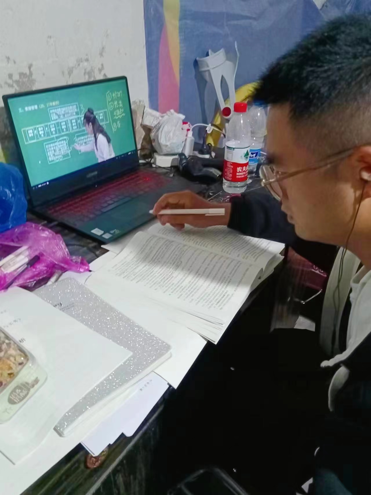 10月24日,甘宇在家中学习,为11月的一级建造师考试做准备。 受访者供图
