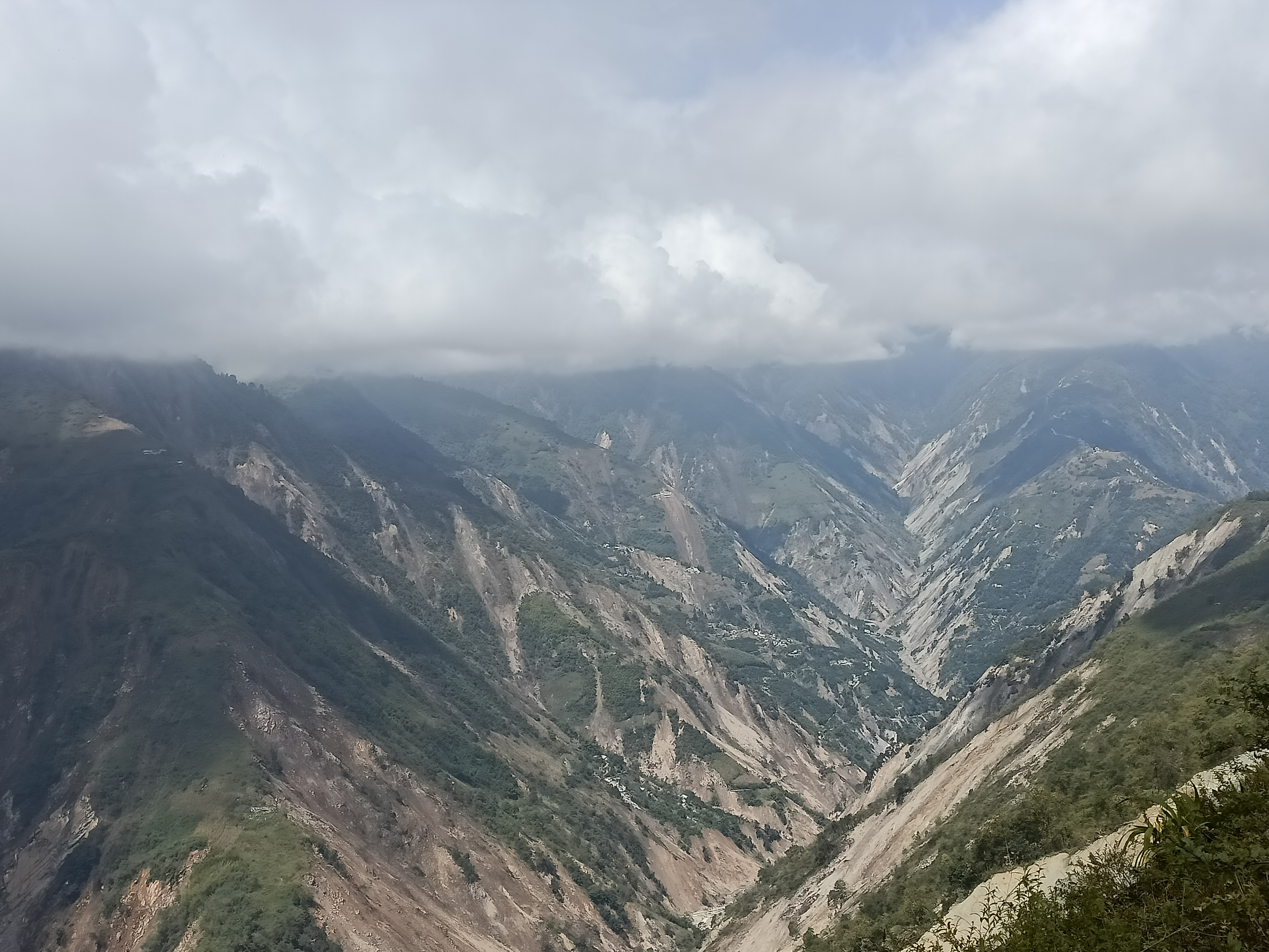 9月30日,地震后的山体仍不时出现滑坡,划出一道道土黄色“伤痕”。 新京报记者 吴采倩 摄