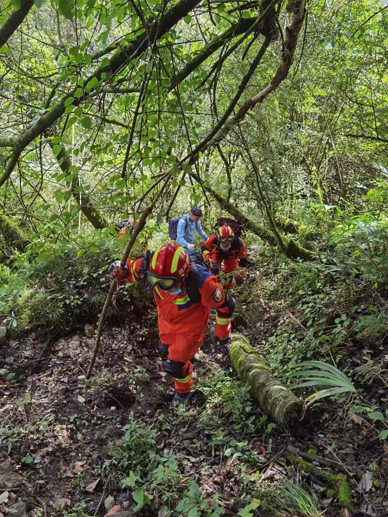 9月10日,在甘宇独自出发自救的同时,消防救援人员也正在山上进行搜救。 受访者供图