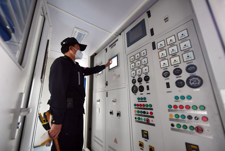 工作人员检查配电柜。