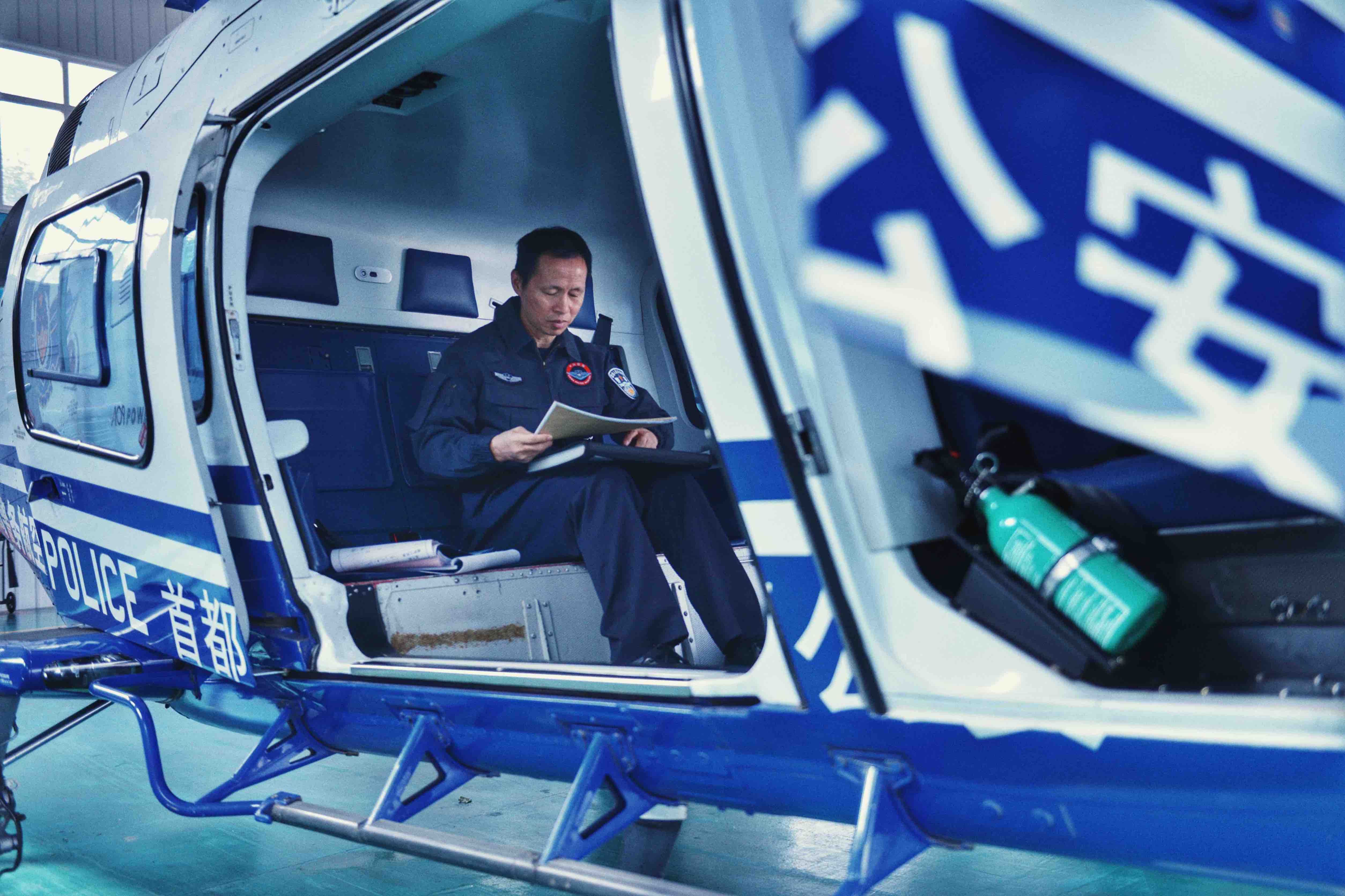 工作中的陈国法。 北京市公安局警务航空总队 格林 摄