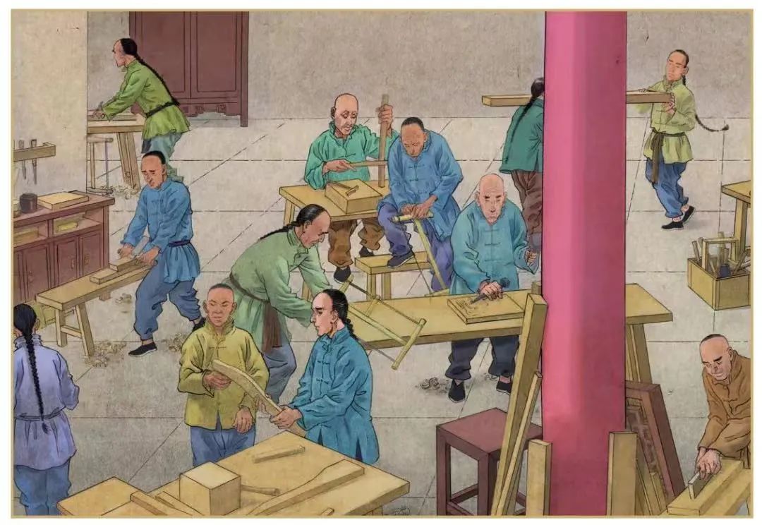 故事大概发生在清康乾年间,一位叫黄广茂的孩子逐渐成长为造办处木作里的顶级高手。故事要体现的是他的工匠精神和海纳百川的胸怀,但细腻的插图则展现了清朝的人物风貌和当时皇家造办处的精湛工艺,黄广茂的成长之路也呈现了清朝的人才晋升制度。