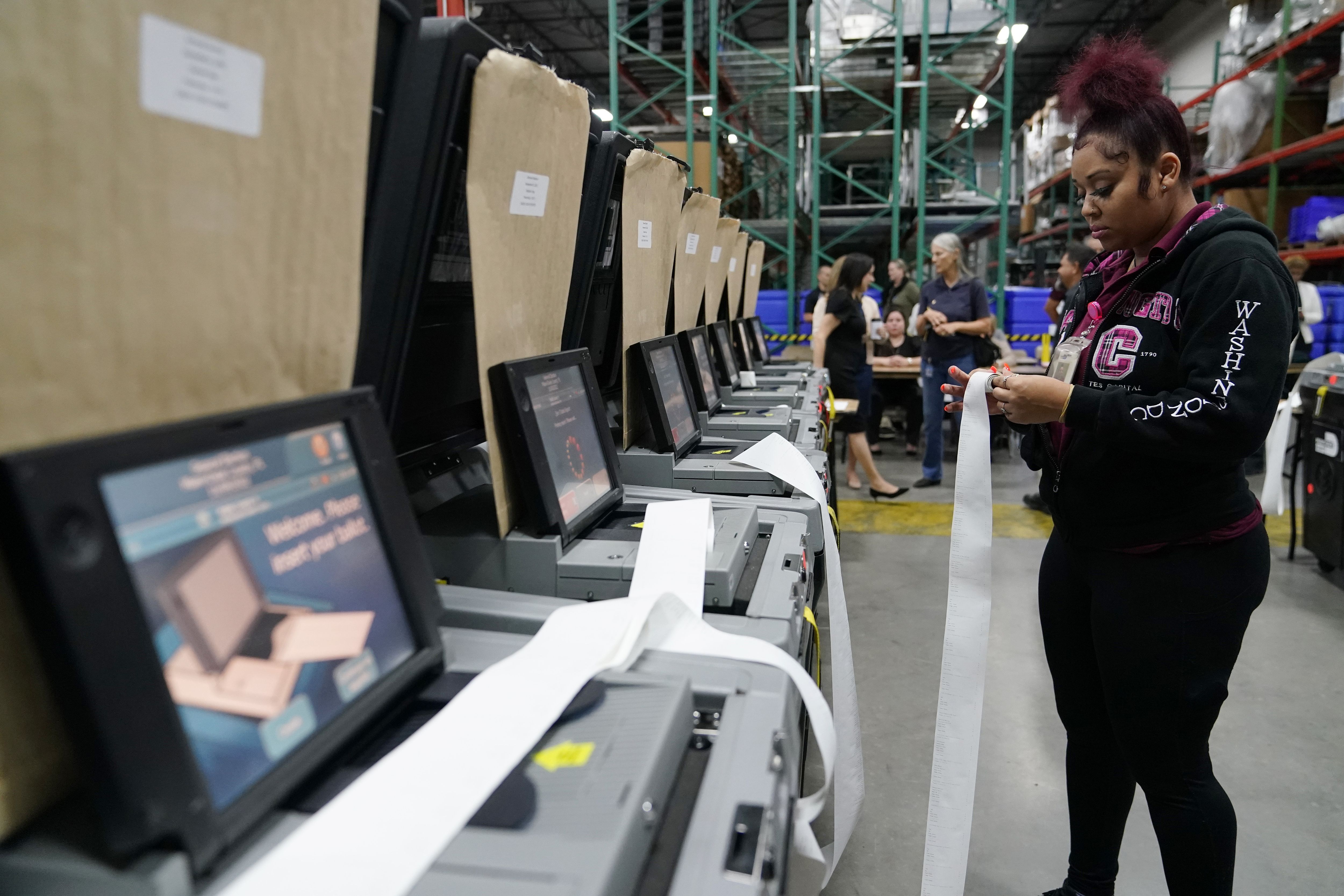 当地时间2022年10月19日,美国迈阿密,美国中期选举即将举行,工作人员在选举部门测试投票设备。图/视觉中国