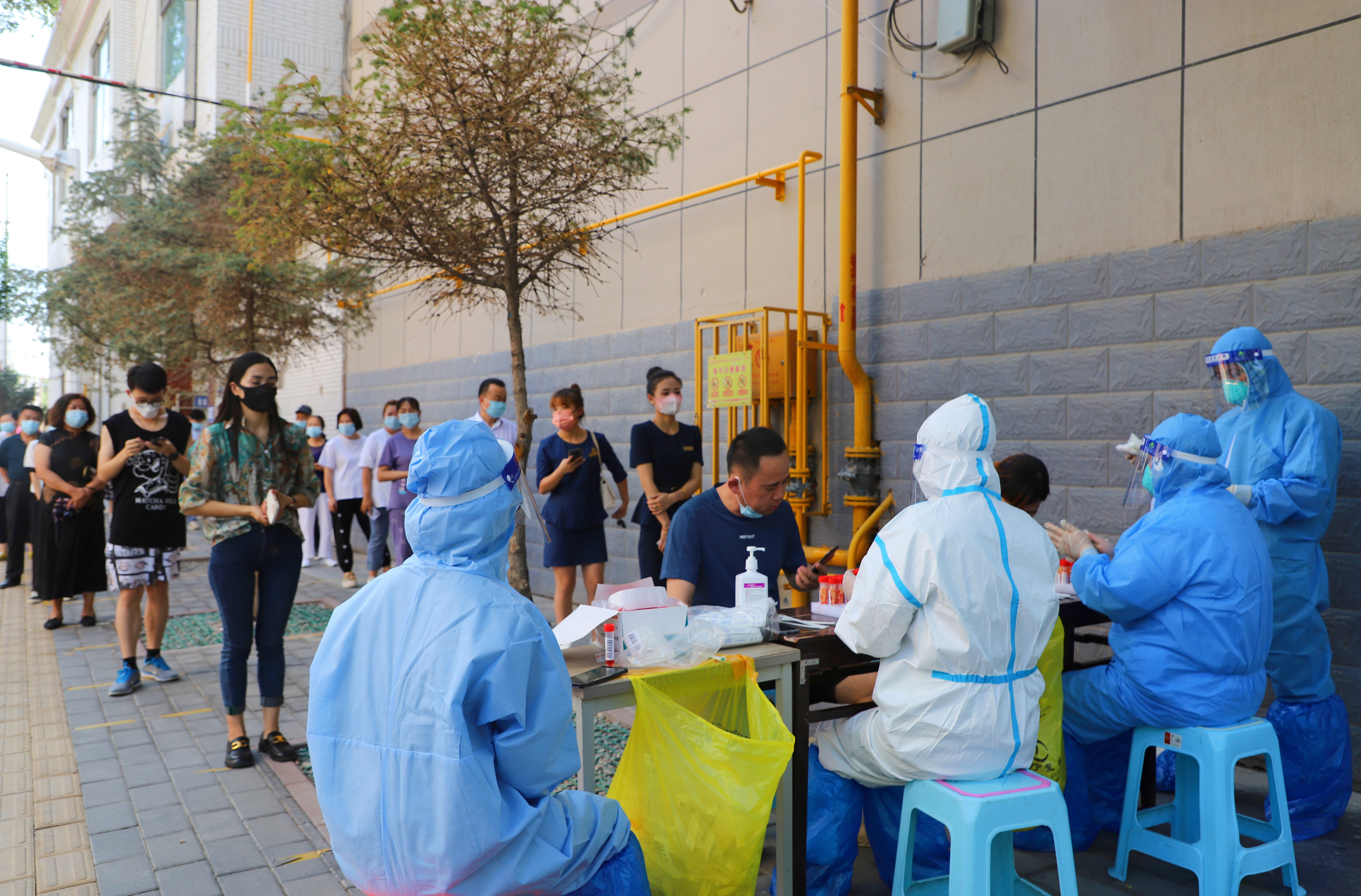8月10日,甘肃张掖,当地居民正排队开展核酸检测。图/IC photo