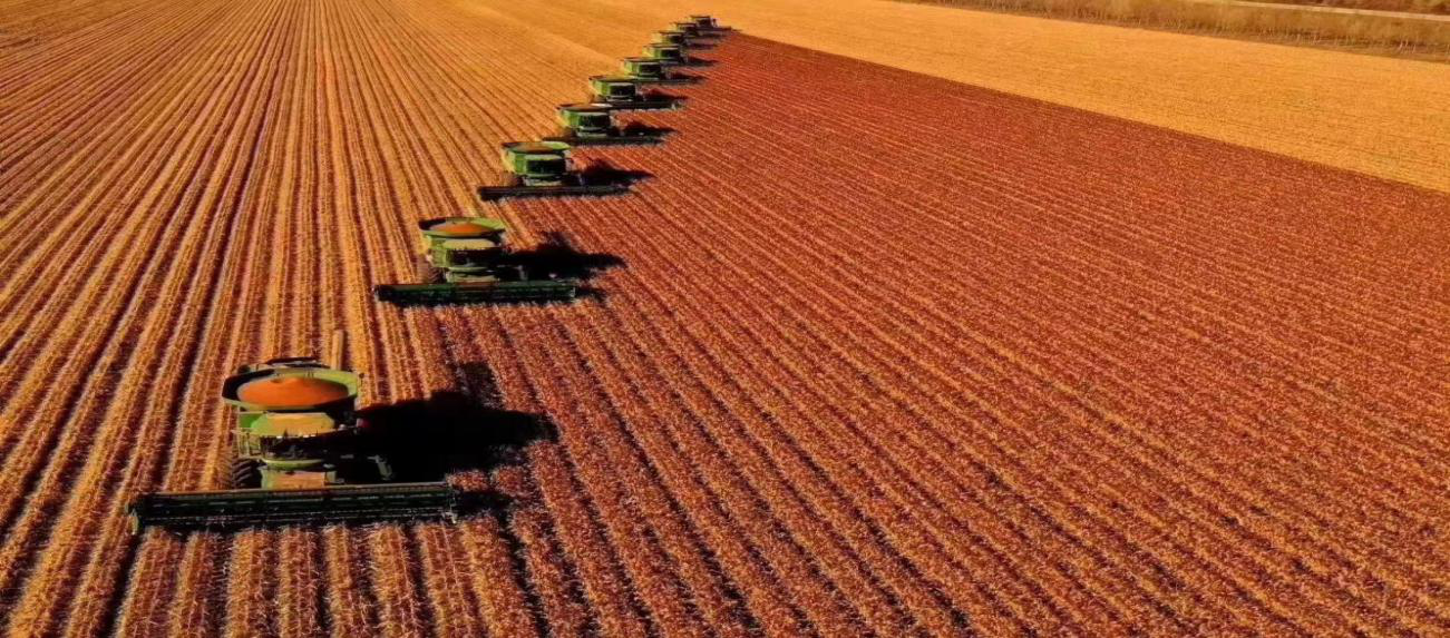 在黑龙江鹤山农场的黑土地上,正在大规模机械化收割矮秆高粱。受访者供图