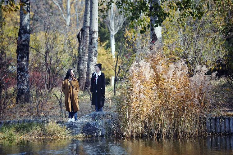 11月3日,国家植物园(北园),两位女孩水边留影。
