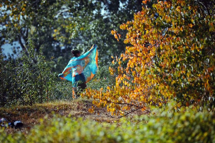 11月3日,国家植物园(北园),一位女士挥舞纱巾,恍若林中蝴蝶。