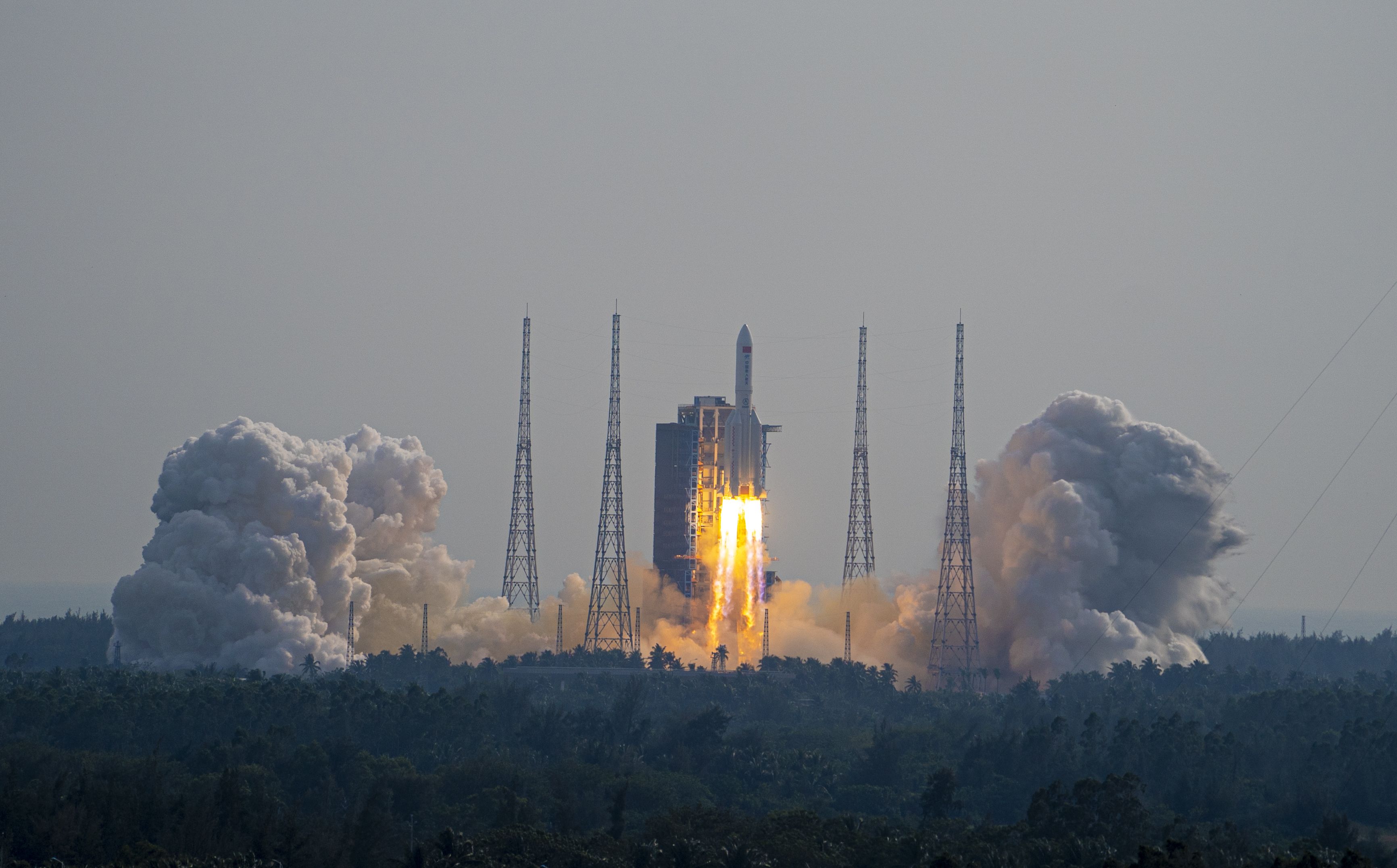10月31日,海南文昌,搭载着空间站梦天实验舱的长征五号B遥四运载火箭,在文昌航天发射场准时点火发射并准确进入预定轨道,发射任务取得圆满成功。袁琛 摄/IC photo