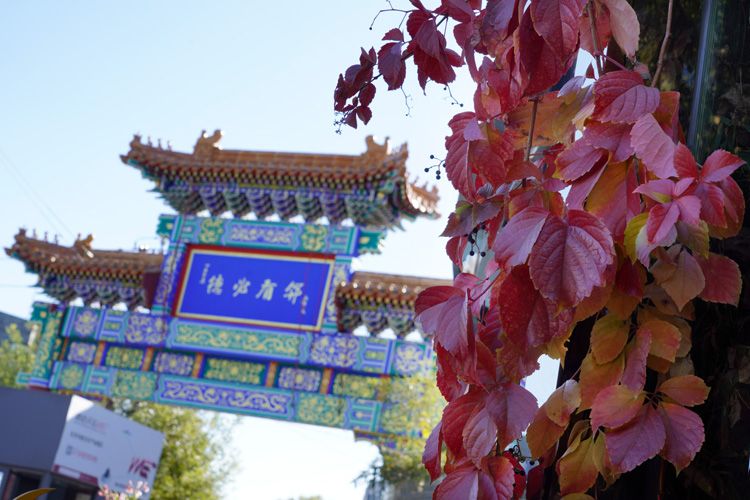 11月4日,东城区法华寺街91号德必天坛WE国际文化创意中心,大门牌楼上书写“德必有邻”。这座园区的前身是北京有轨电车修造厂,北京第一辆有轨电车曾在此生产。2016年,德必集团对其进行升级改造,打造出一座复古与新锐、自然与创意、历史与未来和谐共生的别样天地。